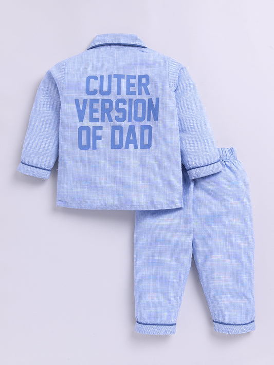 " My Dad is My Hero" Limited Edition Blue Checkered Typography Full Sleeve Night Suit