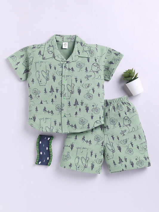 'Boats' Green Cotton Full Sleeve Co-ord Set