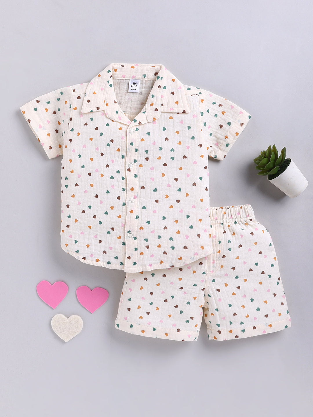 Cream "Hearts" Cotton Short Sleeves Co-ord Set