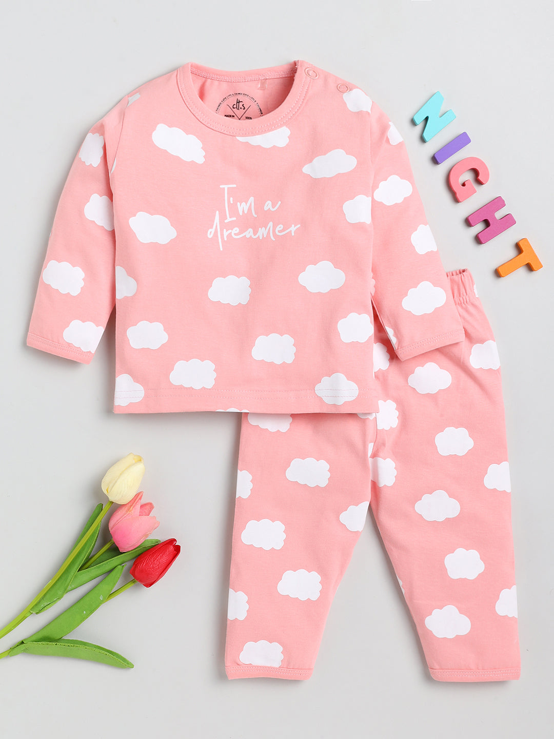Pink "Hearts" Cotton Full Sleeves Night Suit