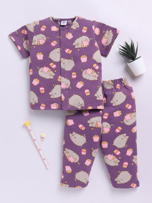 'Clouds' Mauve Cotton Knitted Full Sleeve Night Suit