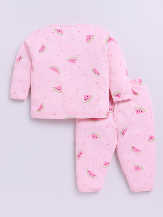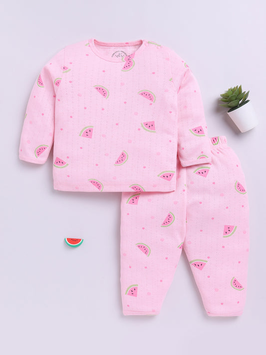 'Snowflake' Pink Cotton Knitted Full Sleeve Night Suit