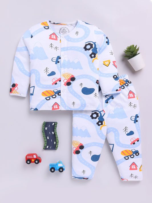 'Cars' Green Cotton Knitted Full Sleeve Night Suit