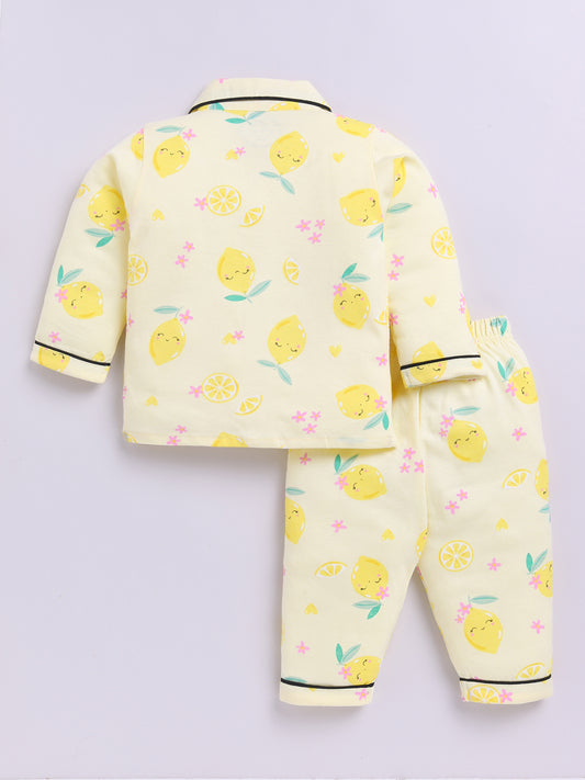 'Cars' Beige Cotton Knitted Full Sleeve Night Suit