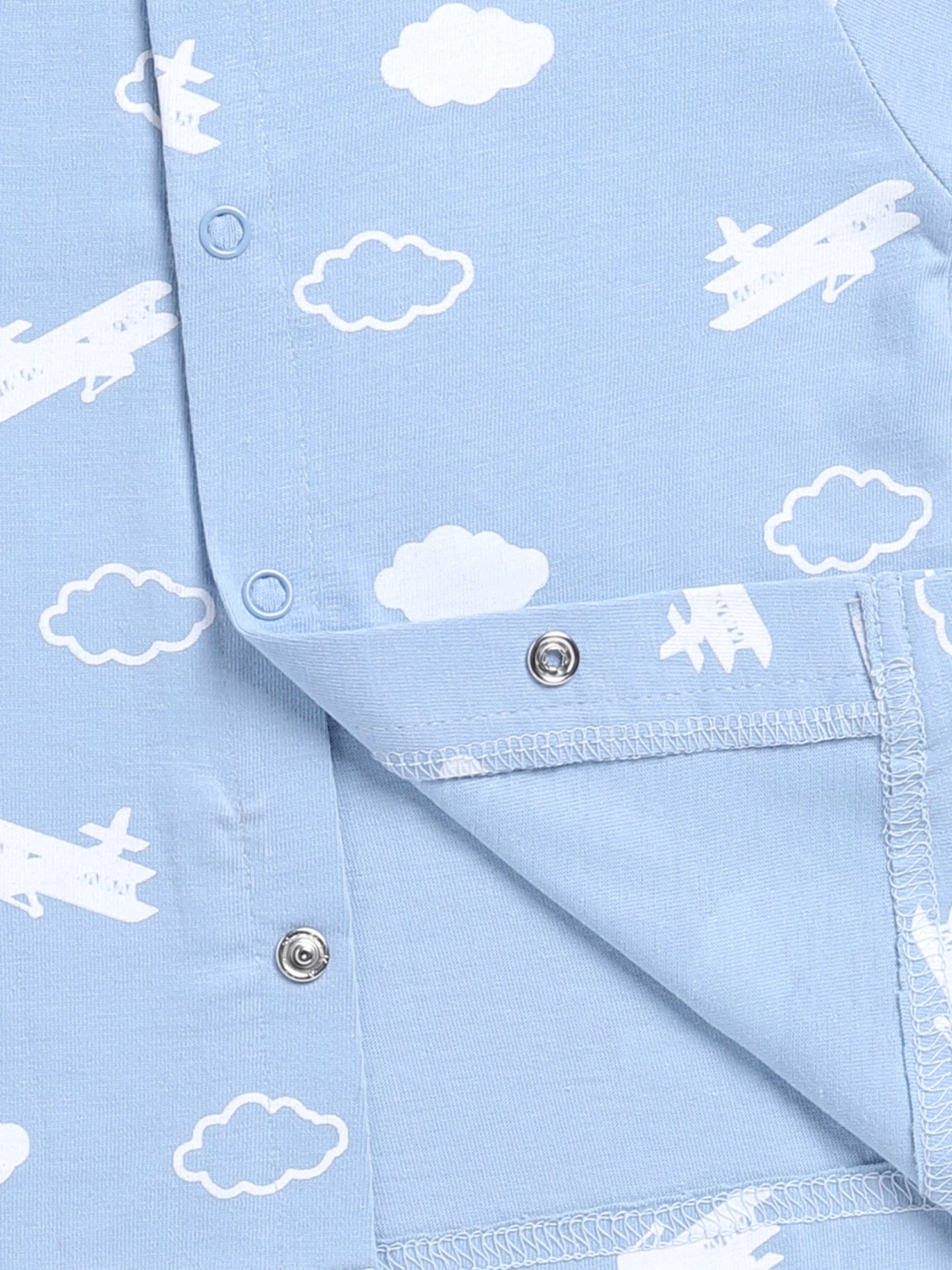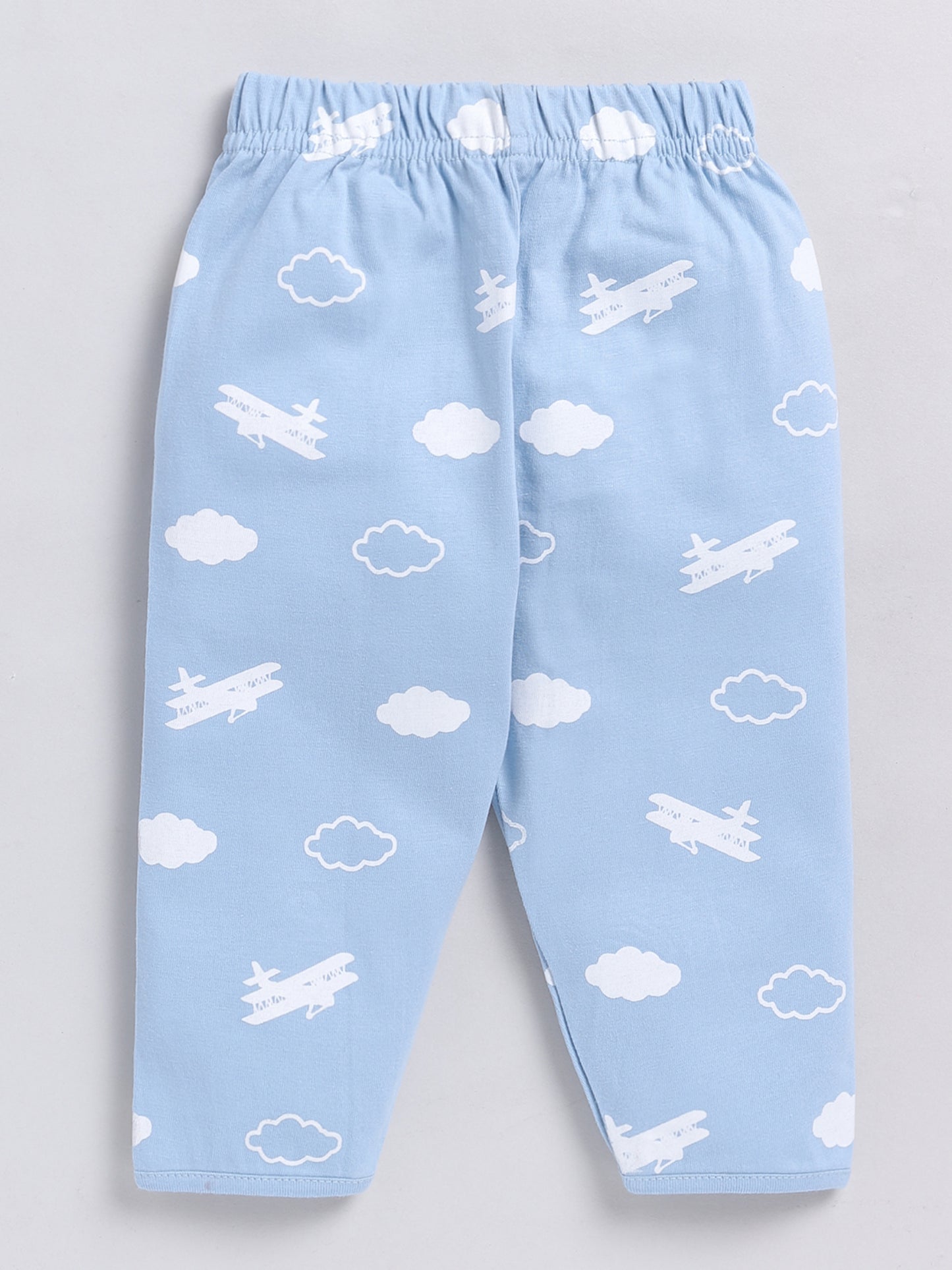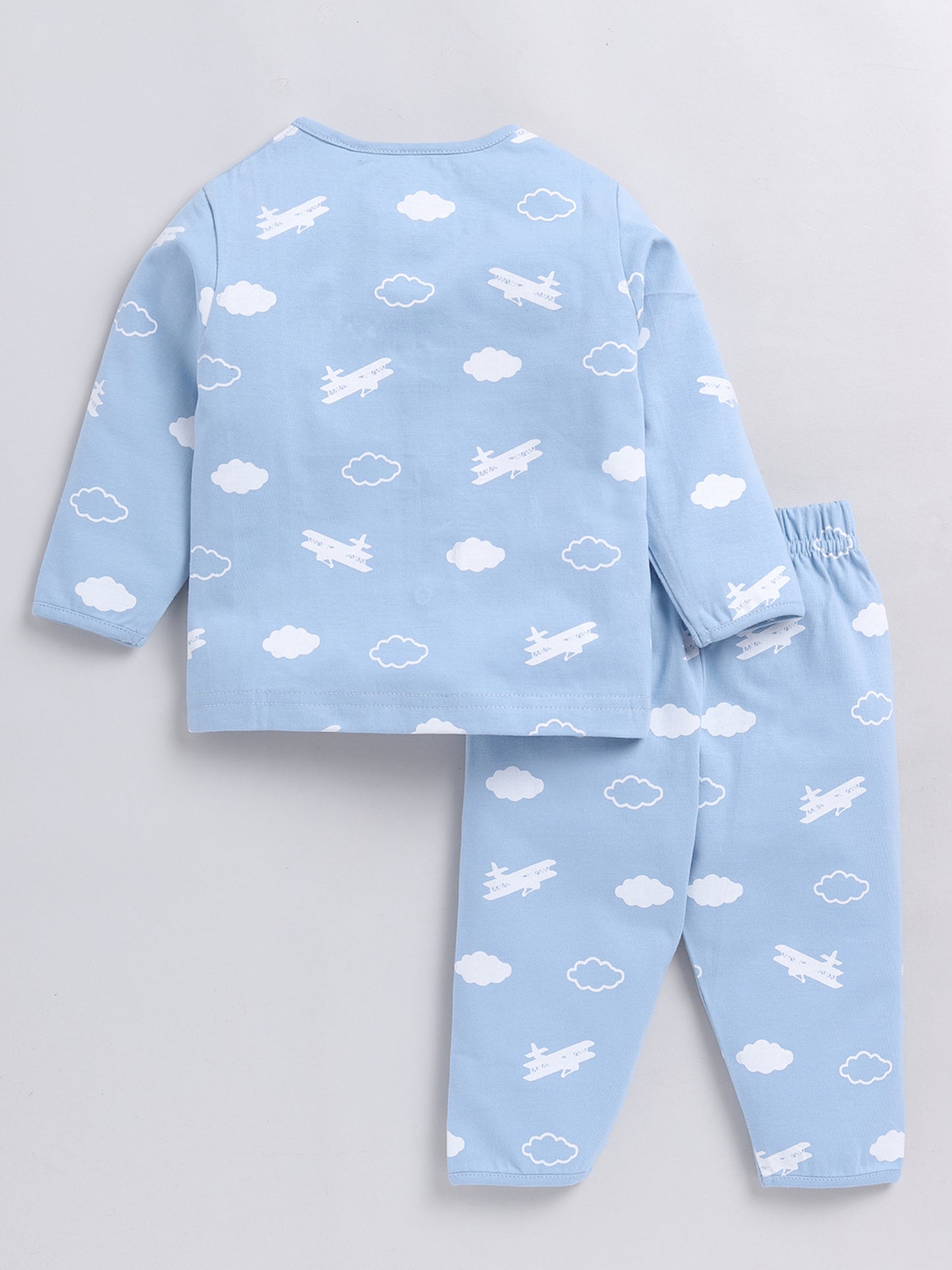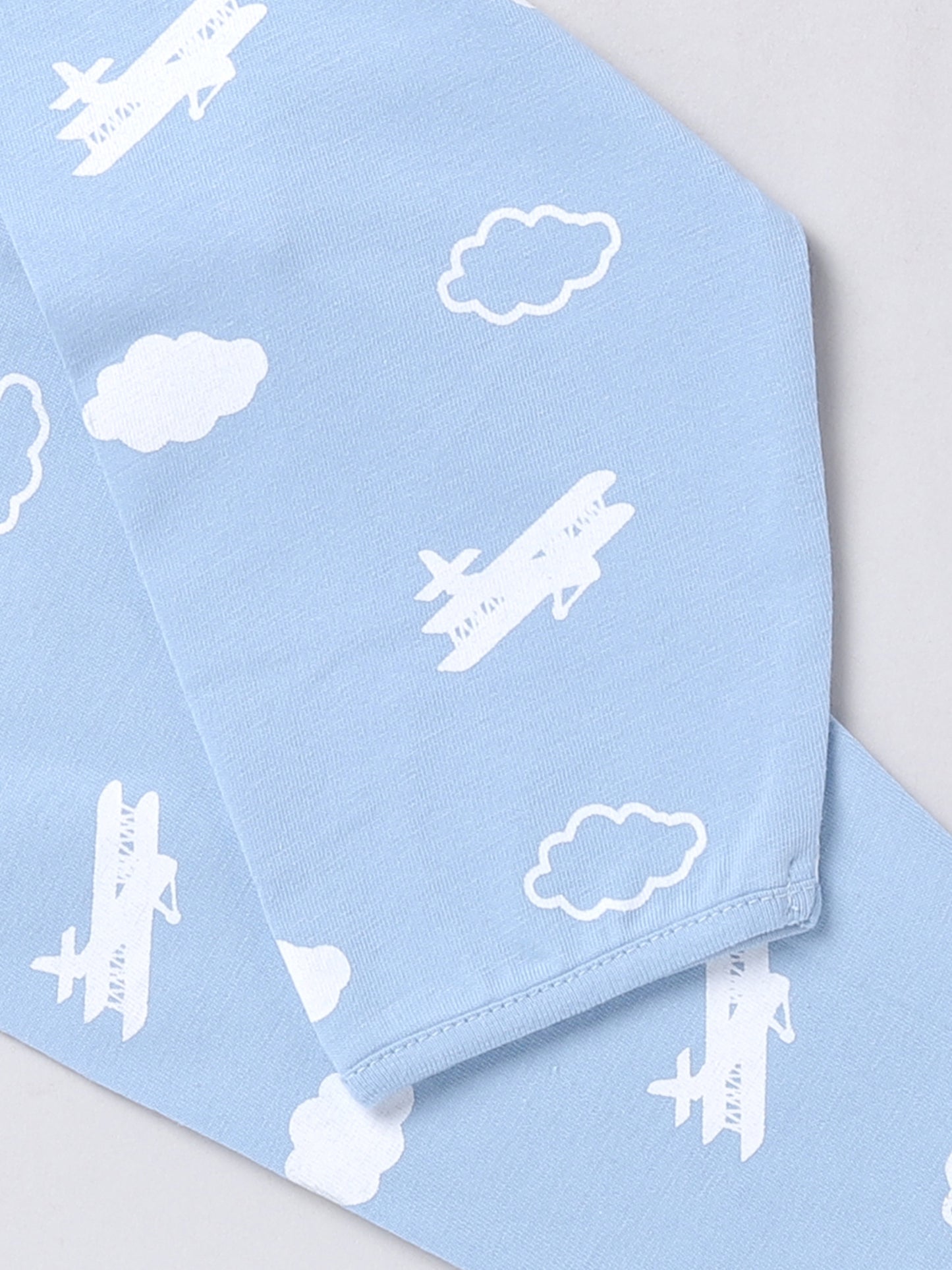 Aeroplane & Clouds Blue Full Sleeve Nightwear Set