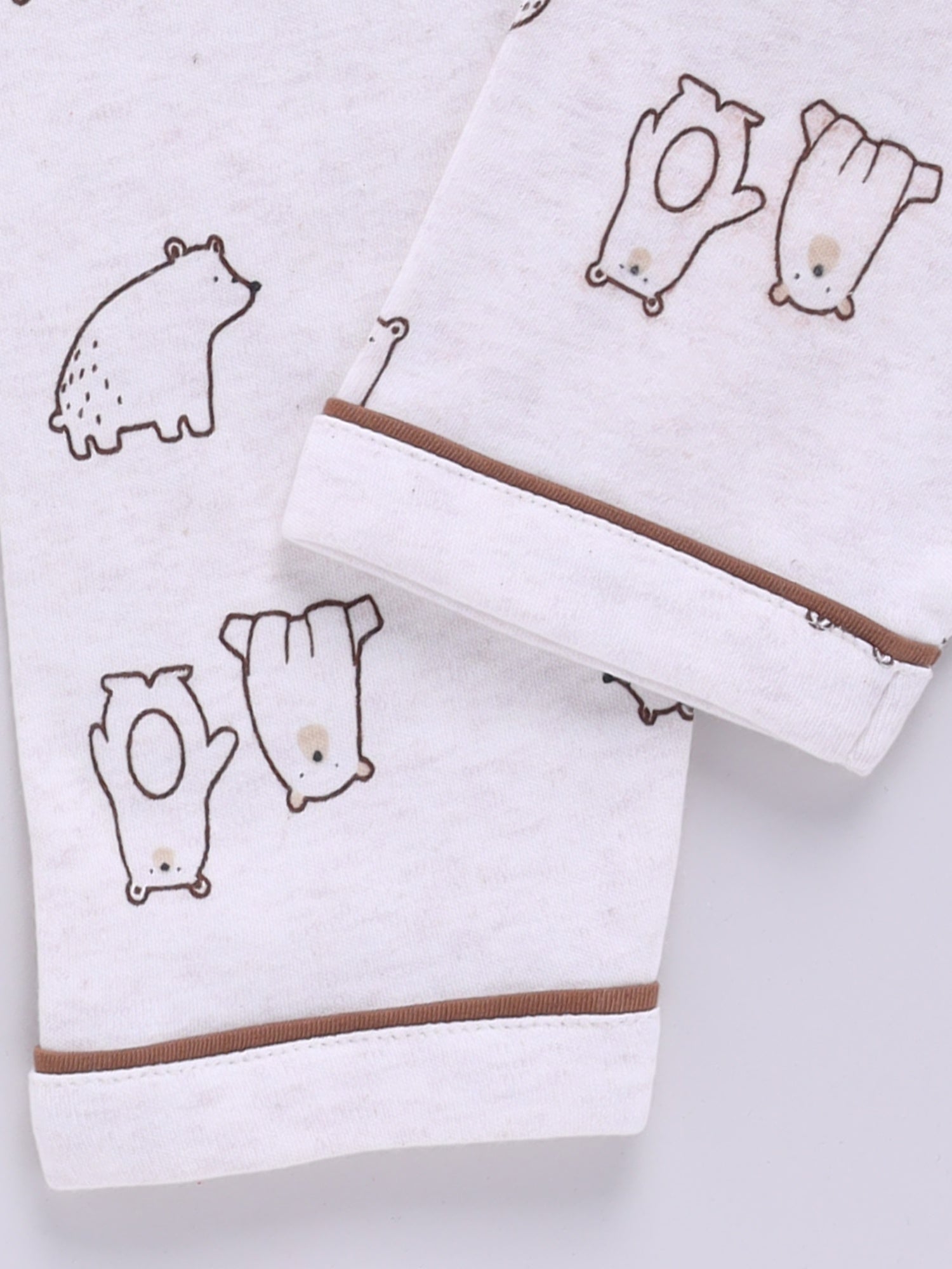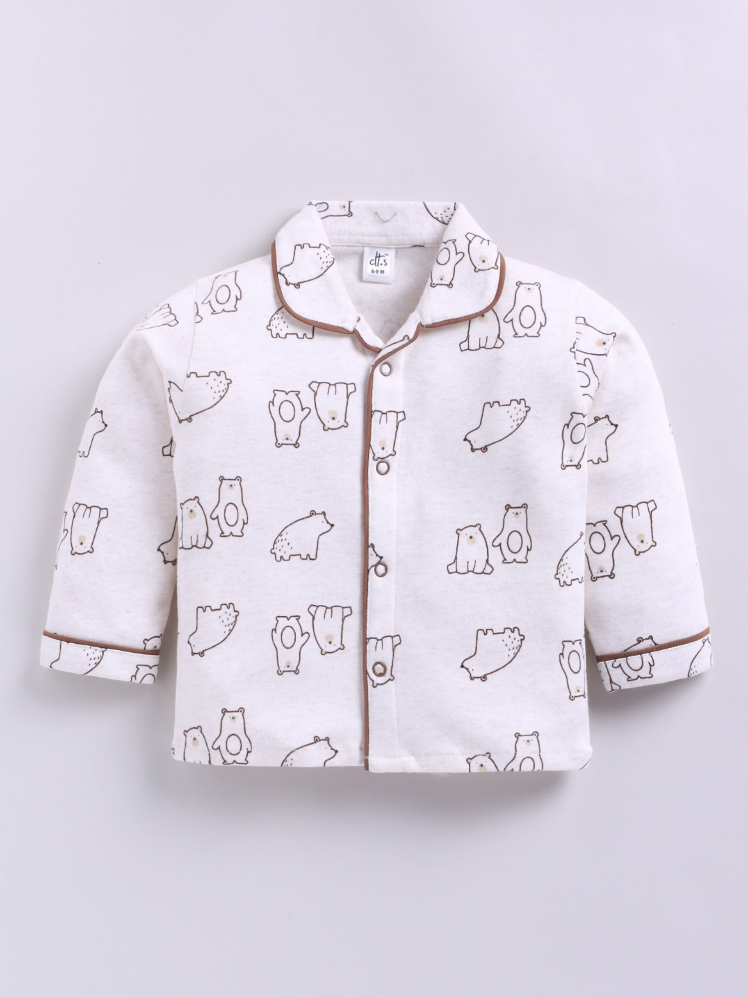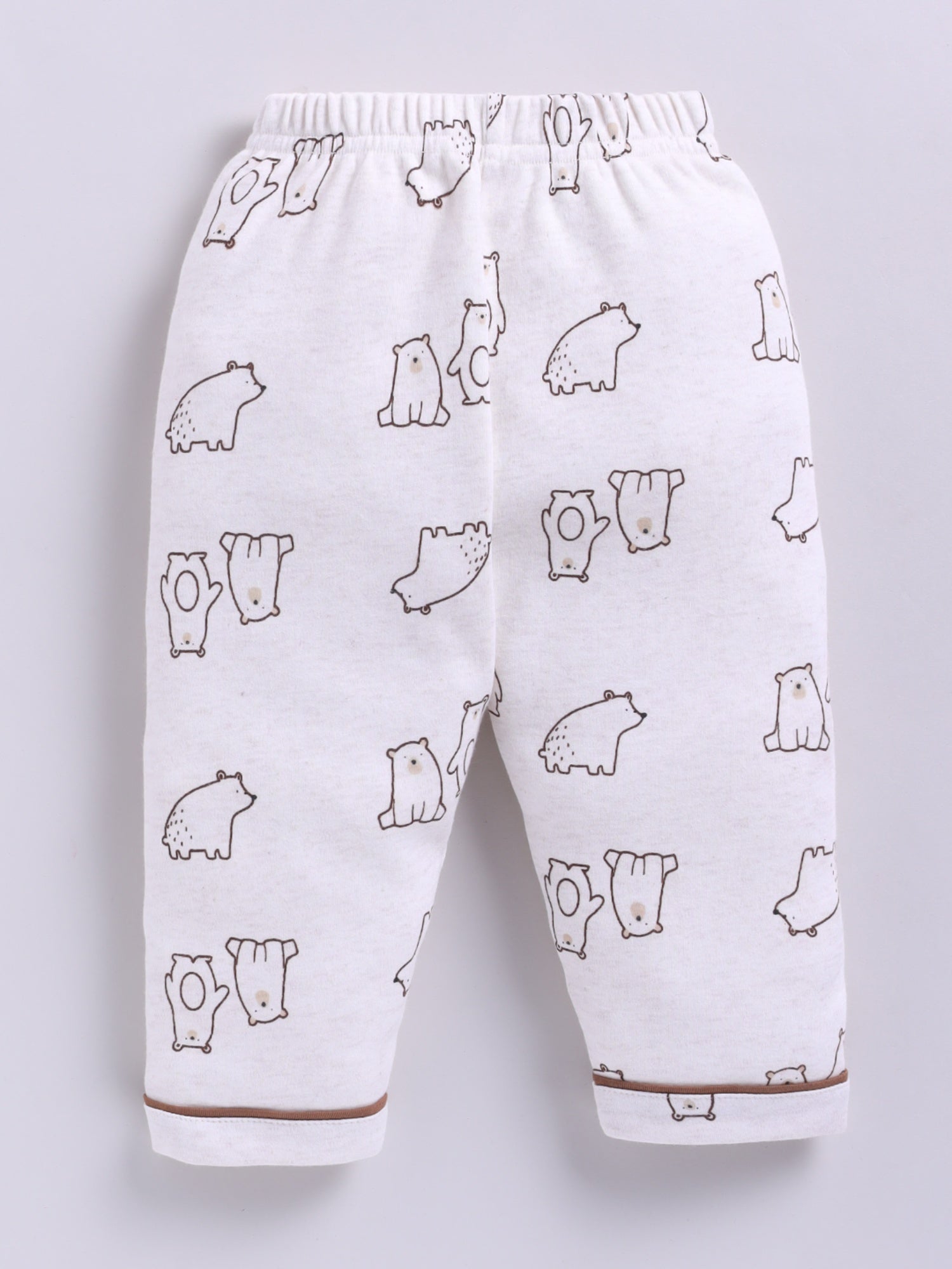Bear Printed Brown Cotton Full Sleeve Night Suit