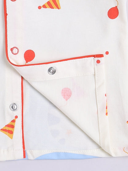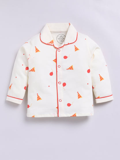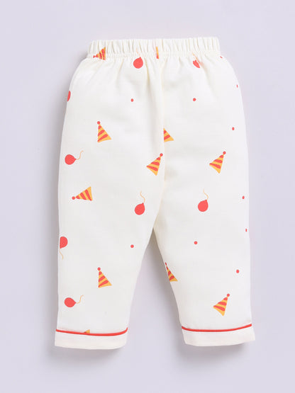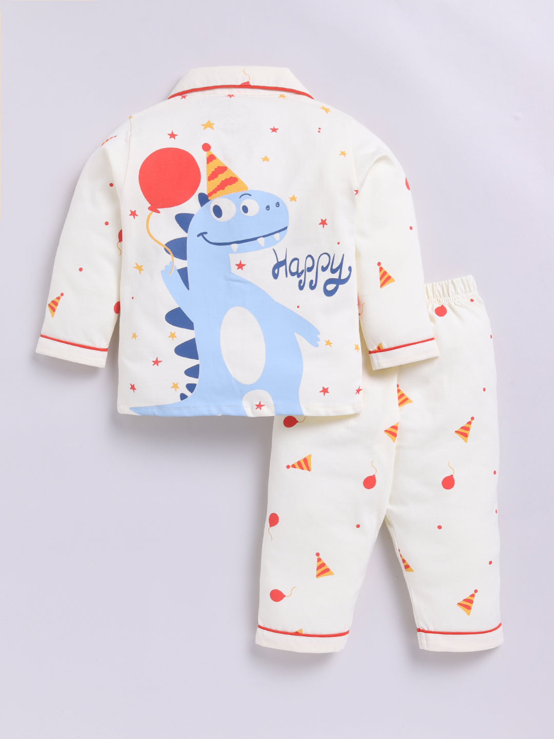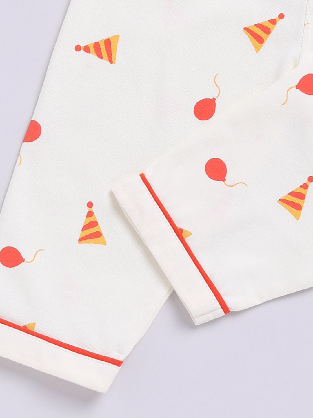 Birthday Theme Cream Cotton Full Sleeves Nightwear Set