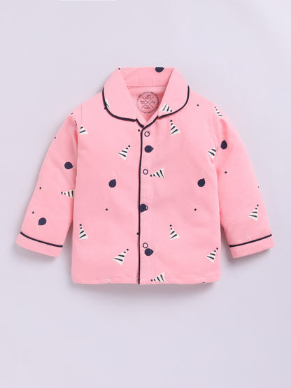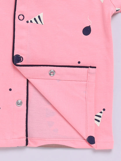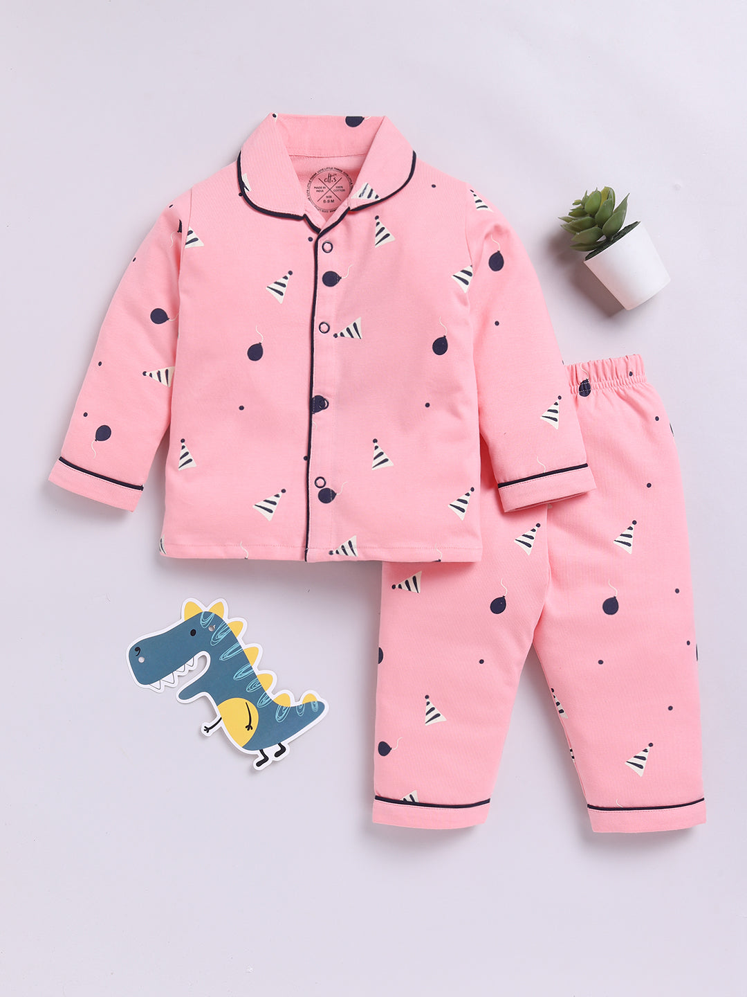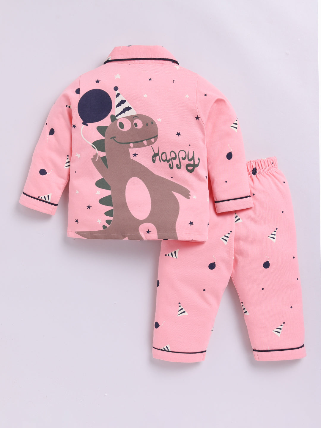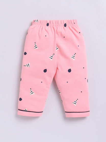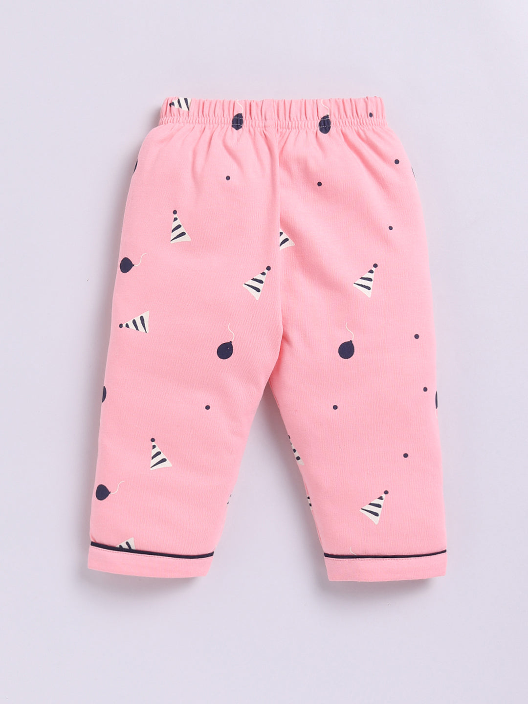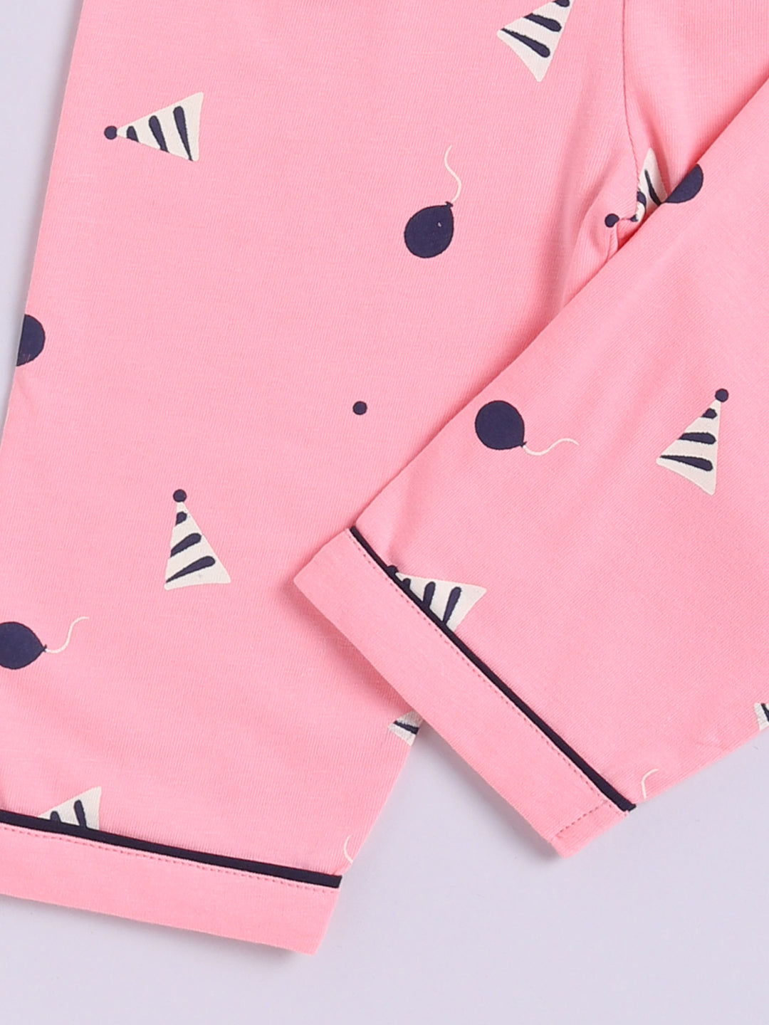Birthday Theme Pink Cotton Full Sleeves Nightwear Set