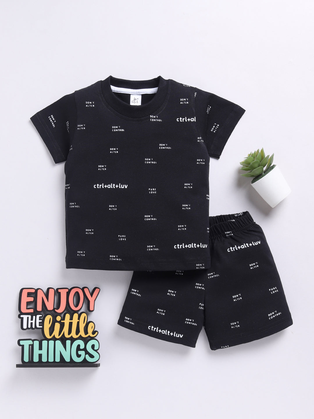 Playful & Practical: Crafted for comfort, this cotton summer outfit is soft, breathable, and perfect for endless playtime. Let your child stay stylish while feeling light and free! The co-ord set has Round Neck and Short Sleeves in a Typography print