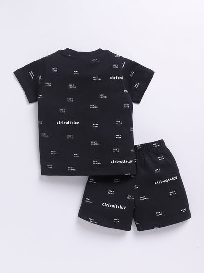 Black Typography Short Sleeves Co-ord Set