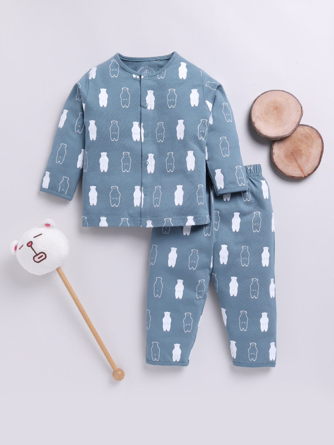 Blue Bear Print Full Sleeve Night Suit