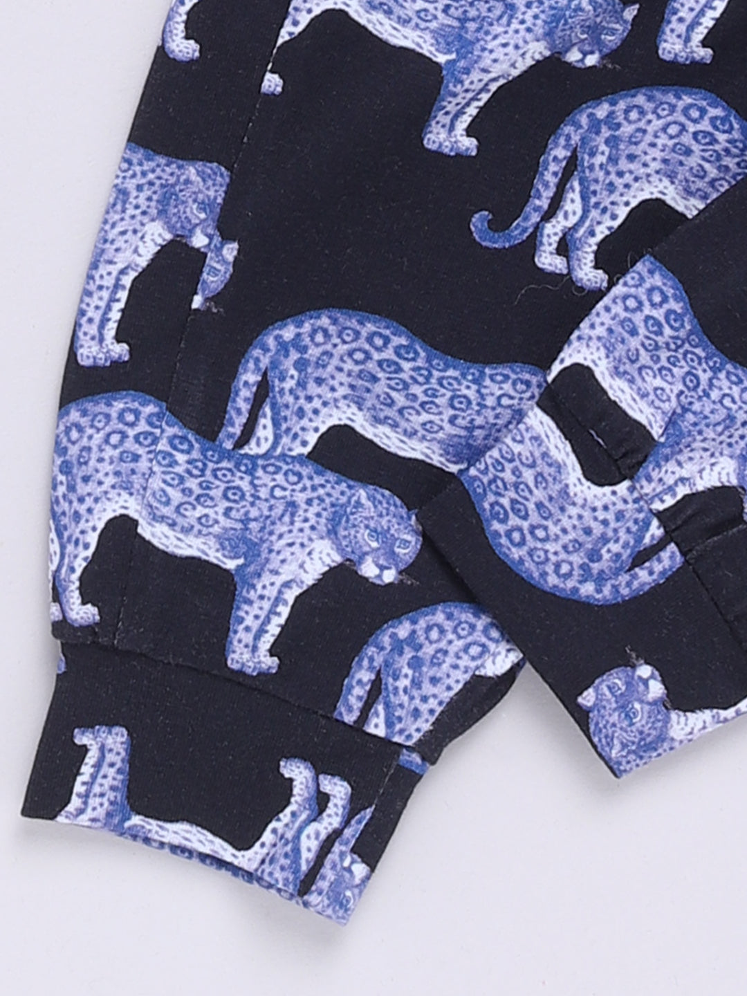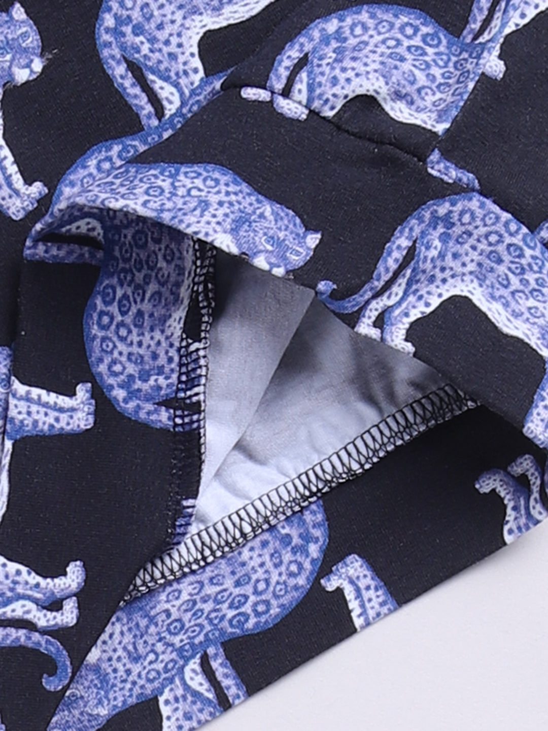 Perfect Match: This kids' co-ord set offers a perfectly matched top and bottom, crafted from soft, lightweight fabric. Its playful print and relaxed fit make it ideal for casual days or weekend outings. The Co-ord Set is made of 96% Cotton 4% Spandex and has a Round Neck with animal print.