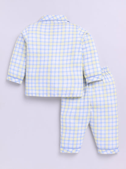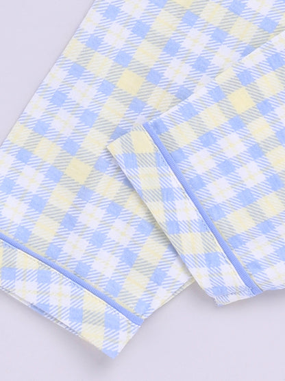 Blue Cotton Full Sleeves Checked Nightwear Set