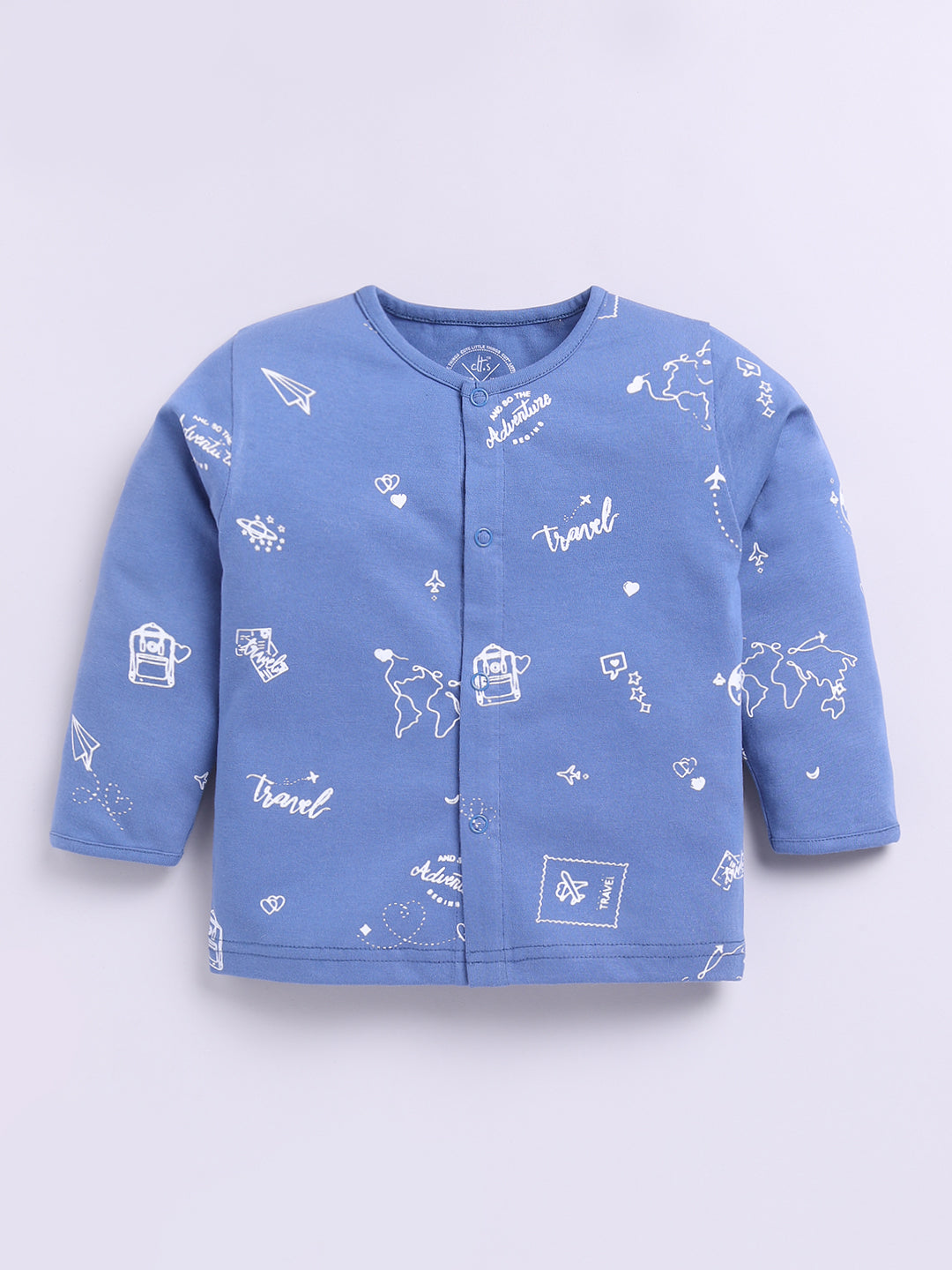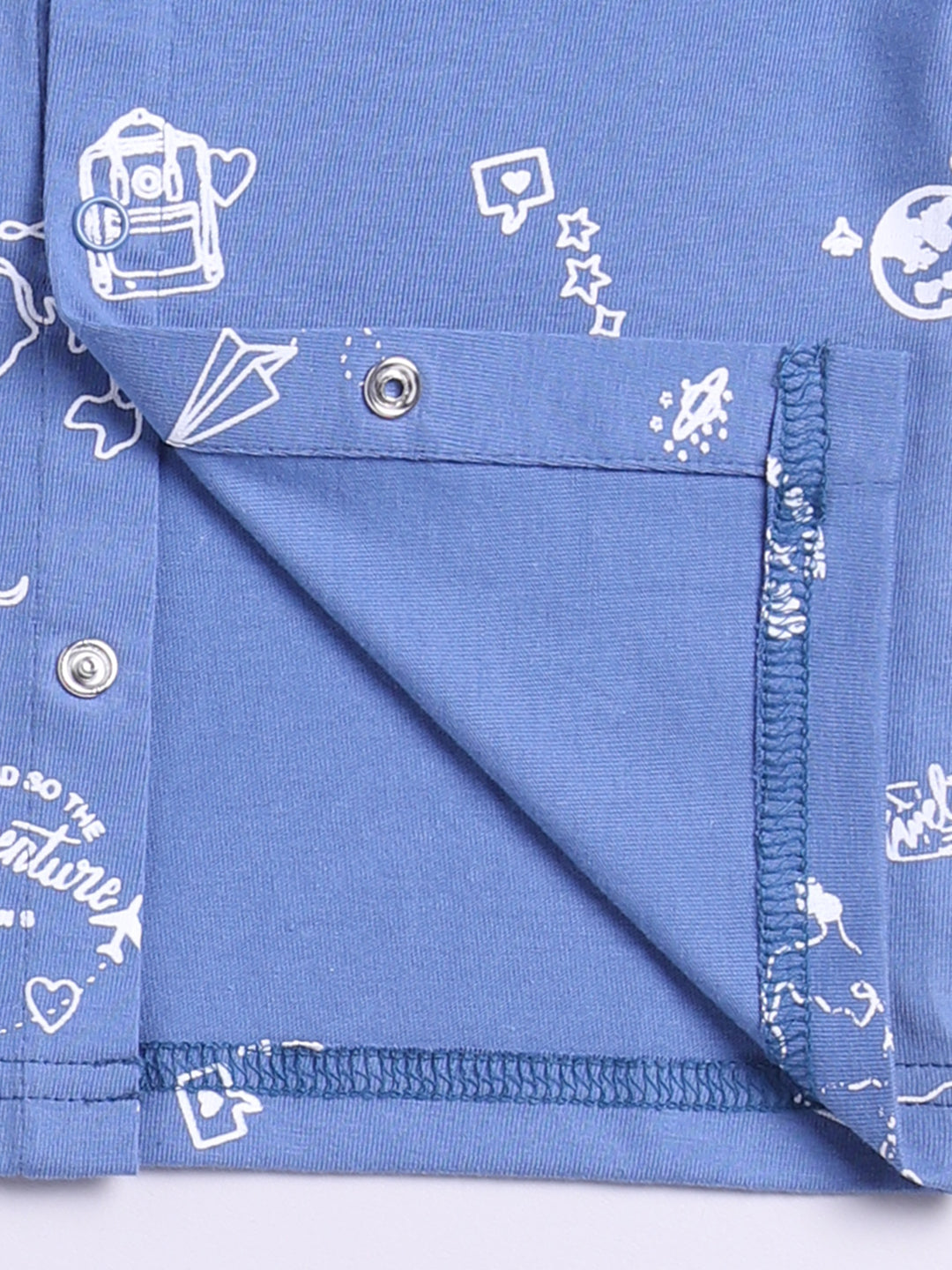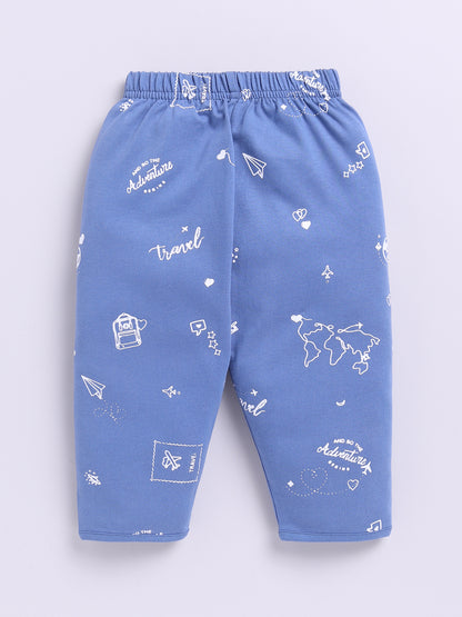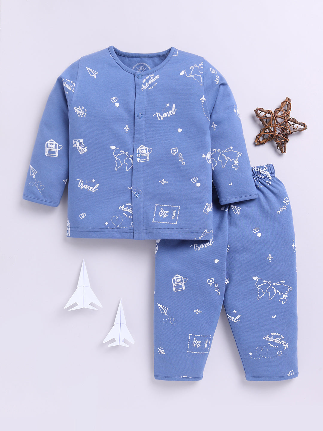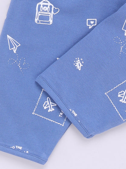 Blue Cotton Full Sleeves Graphic Nightwear Set