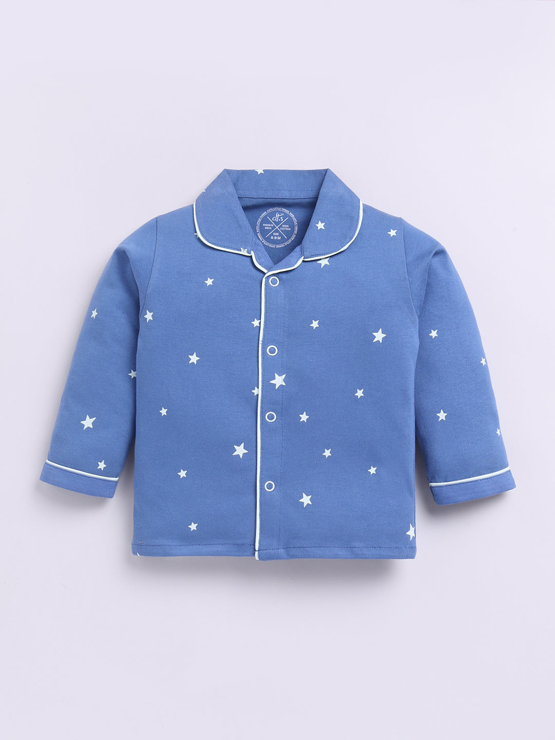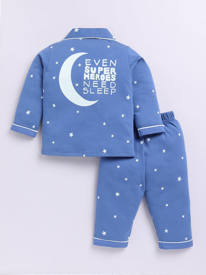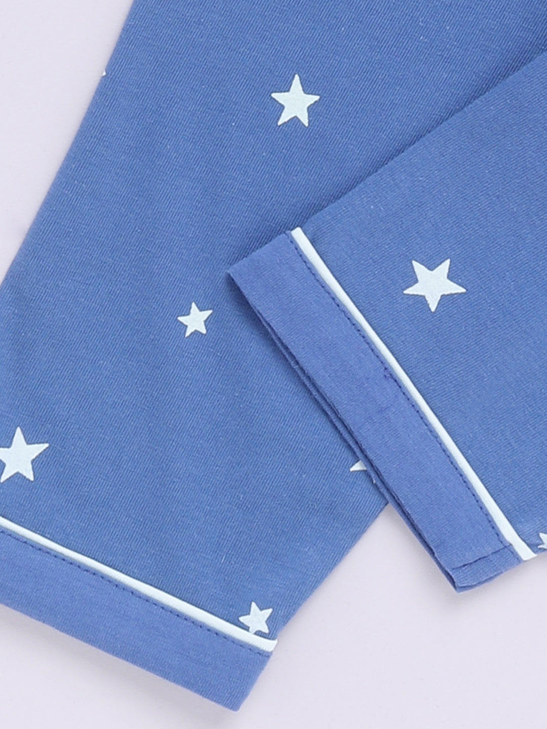Blue Cotton Full Sleeves Starry Nightwear Set