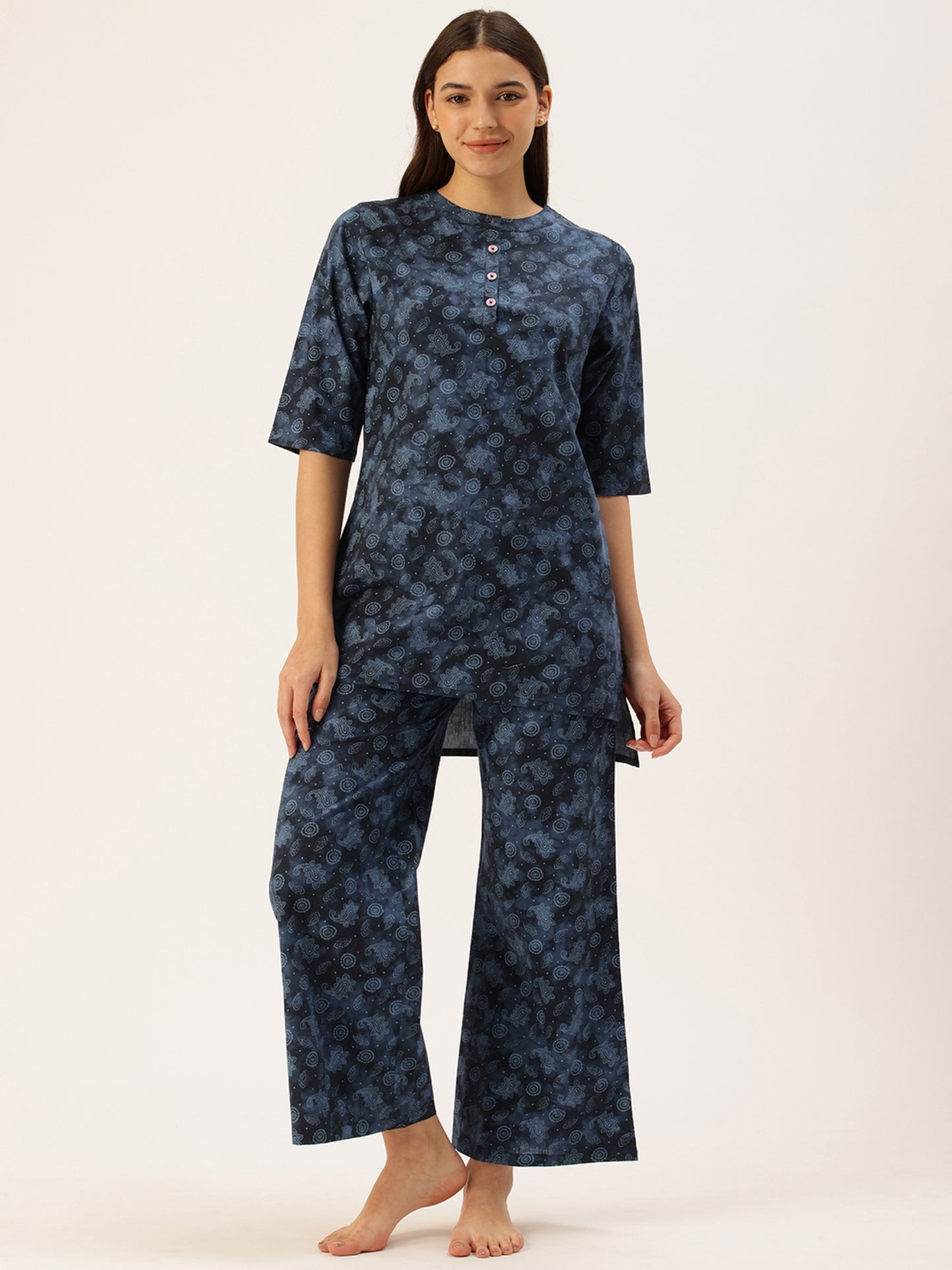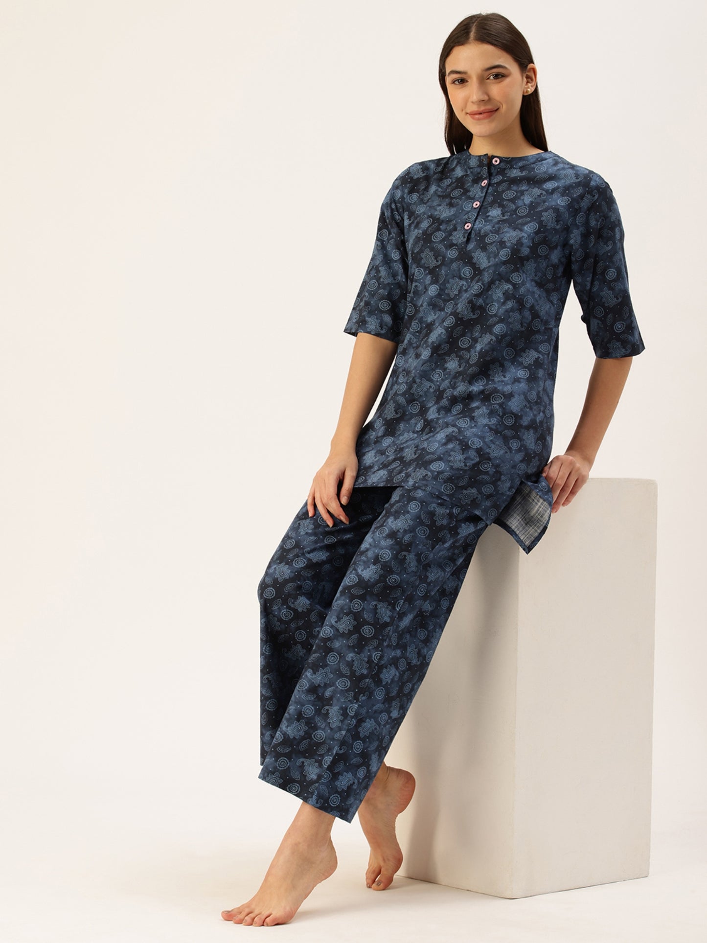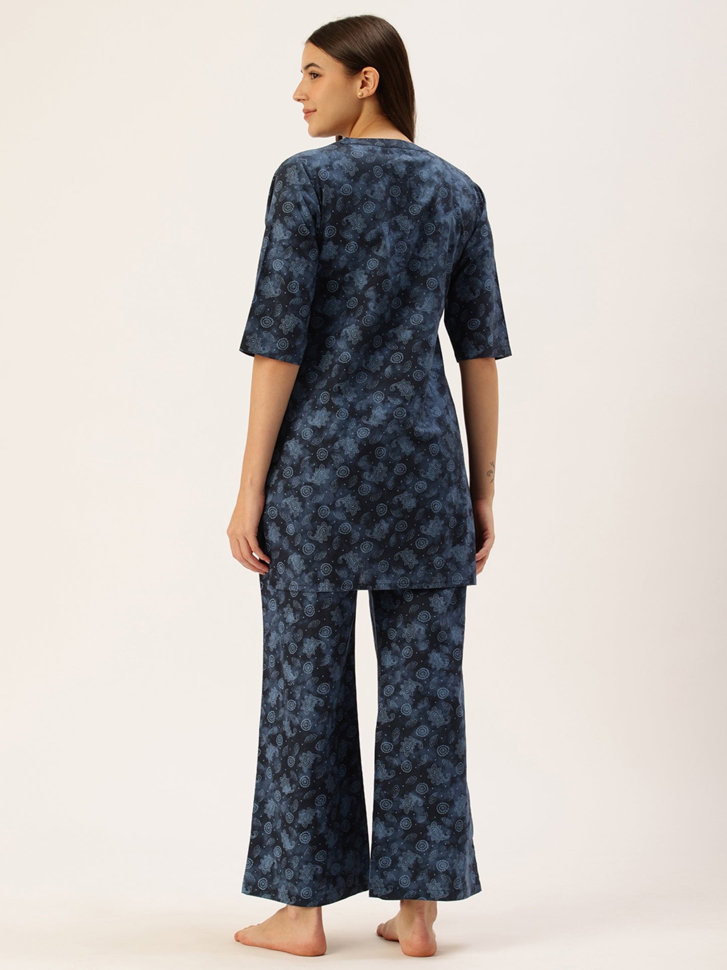 Introducing our Blue Floral Kurta & Palazzo Set for Women by CLT.S, a classic nightwear choice made from premium 100% cotton. This ensemble is designed for versatility and comfort. Whether you're unwinding after a long day or just want to feel your best, this set will be your go-to. The elegant blue floral print adds a touch of sophistication to your evening routine.