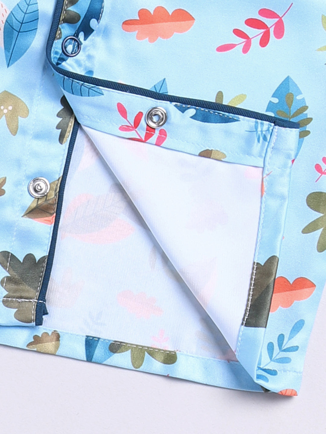Cute and Cozy: This cute nightwear set keeps your child cozy and comfy all night. Made from soft fabric, it’s designed to keep them comfortable while they sleep. The Blue Full sleeve Night Suit is made of Satin and has a Shirt collar with Floral print