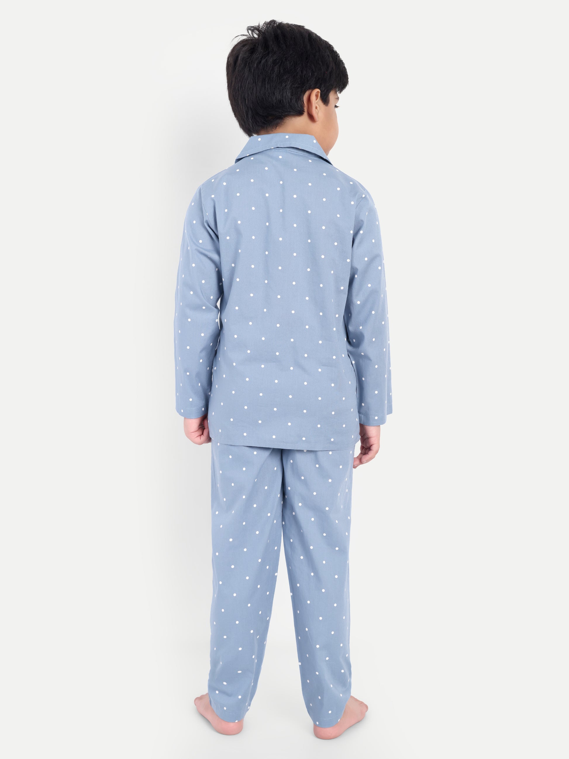 Blue Full Sleeves Polka Dots Night Suit
