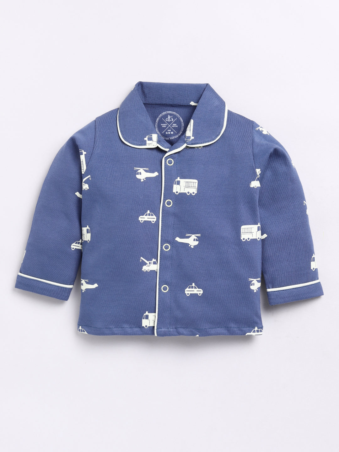 Ensure a restful night's sleep with our ultra-soft pajamas, providing ultimate comfort and relaxation. This full sleeve night suit is made of 100% Cotton and has a shirt collar and Graphic Print. Wash care- Machine wash