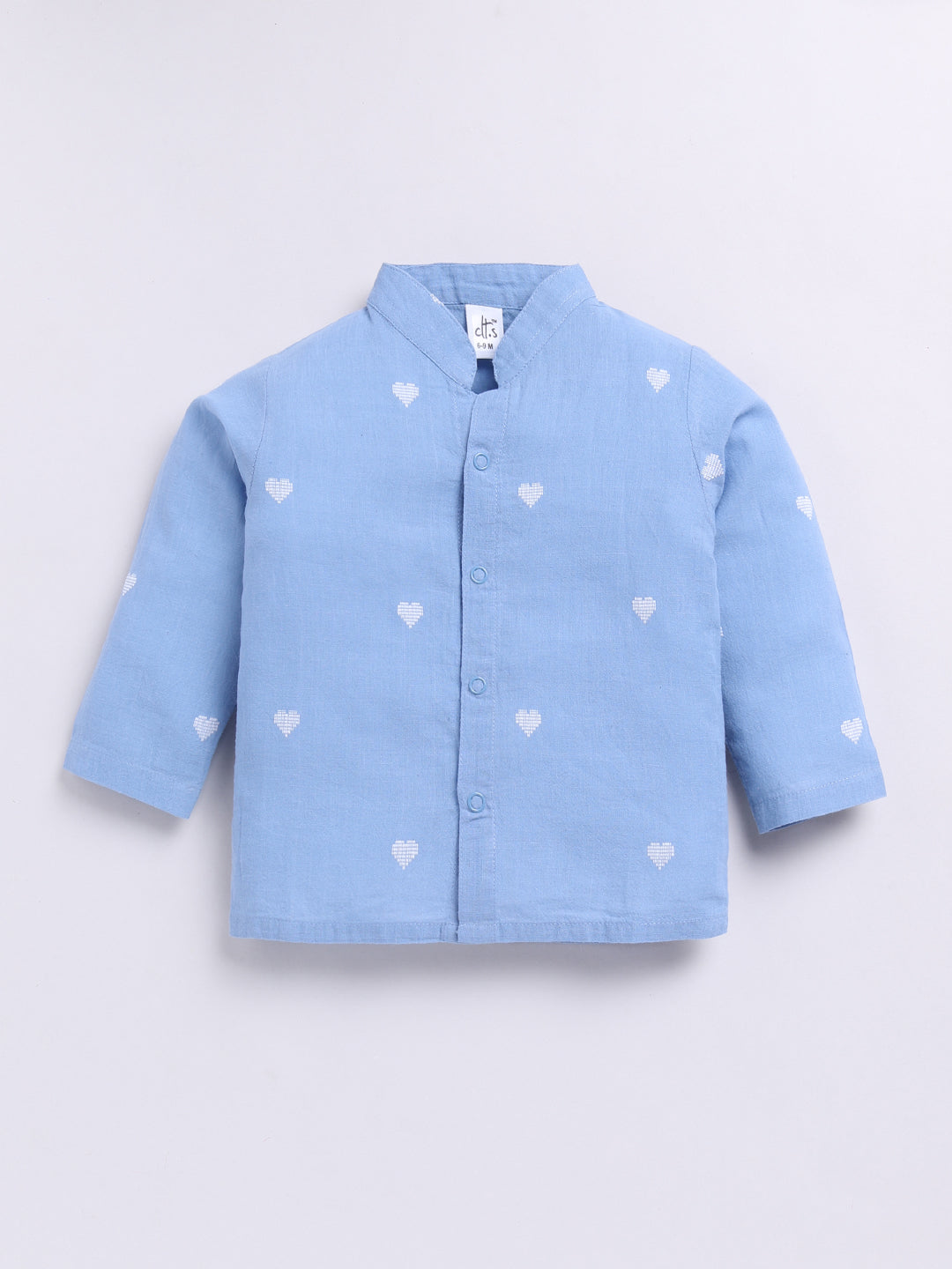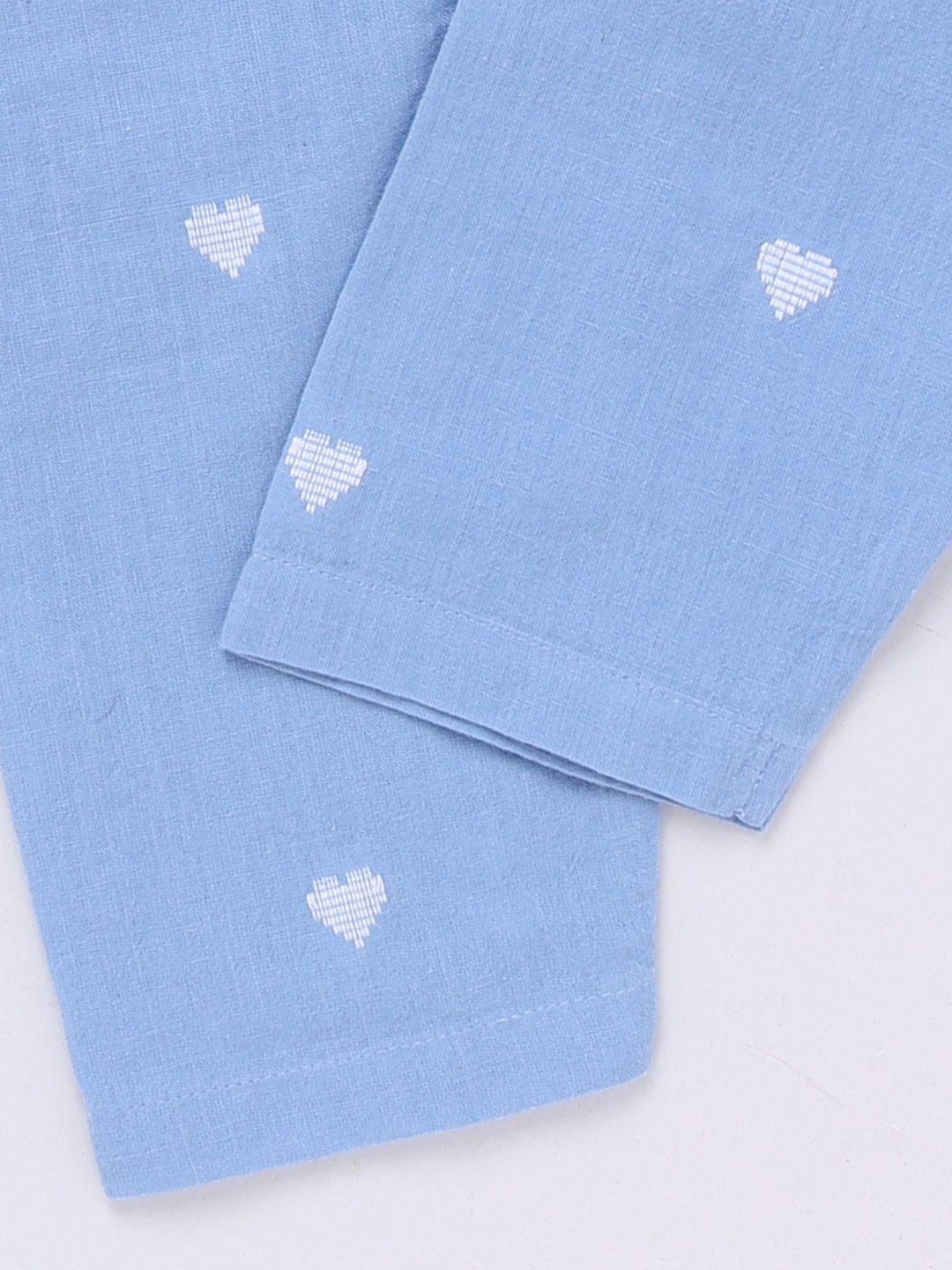 Blue Hearts Cotton Full Sleeves Nightwear Set