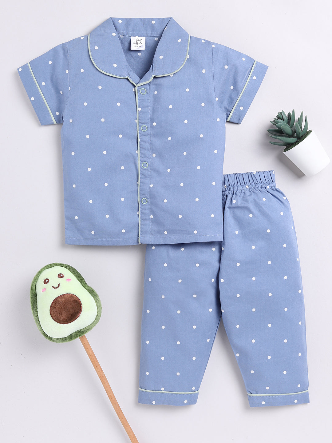 Introducing the Polka Dots 100% Cotton Night Suit by CLT.S, the epitome of charm from India's cutest brand! Crafted with premium cotton, this unisex night suit offers luxurious comfort for ages 6 months to 6 years. Featuring delightful polka dot prints, it adds a playful touch to bedtime routines. Soft, breathable, and oh-so-stylish, this ensemble ensures cozy nights and sweet dreams. Let your little one's imagination soar as they drift off to sleep in the cuddliest and cutest attire from CLT.S! Elevate bedtime with our Polka Dots Night Suit, where comfort meets adorable style for unforgettable sleep experiences.