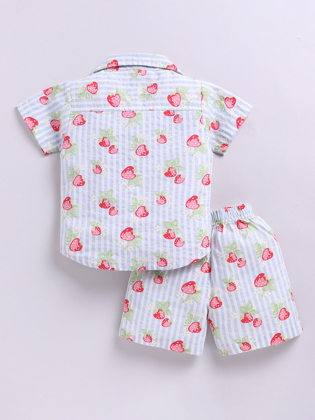 Blue 'Strawberries' Half Sleeve Co-ord Set