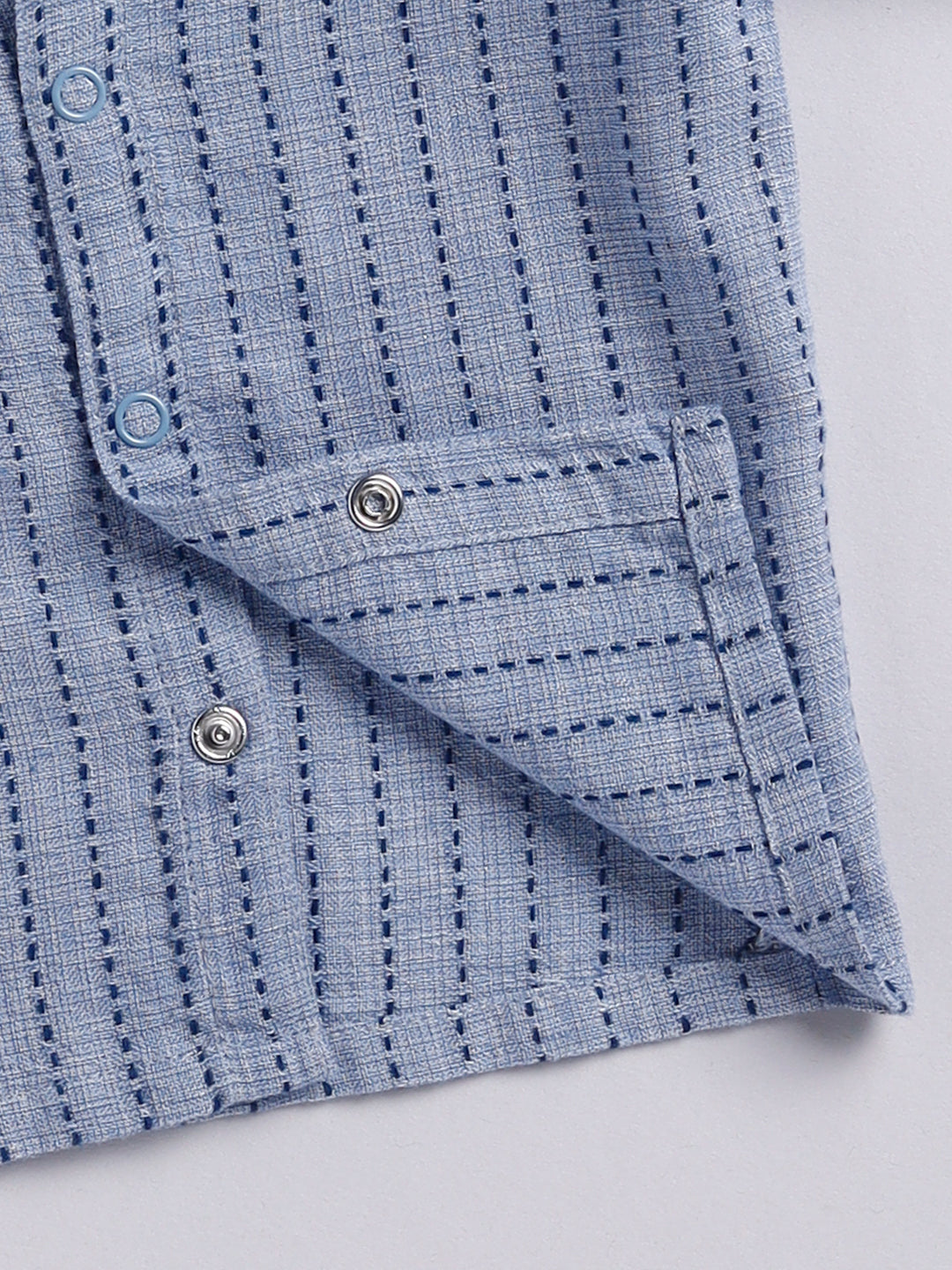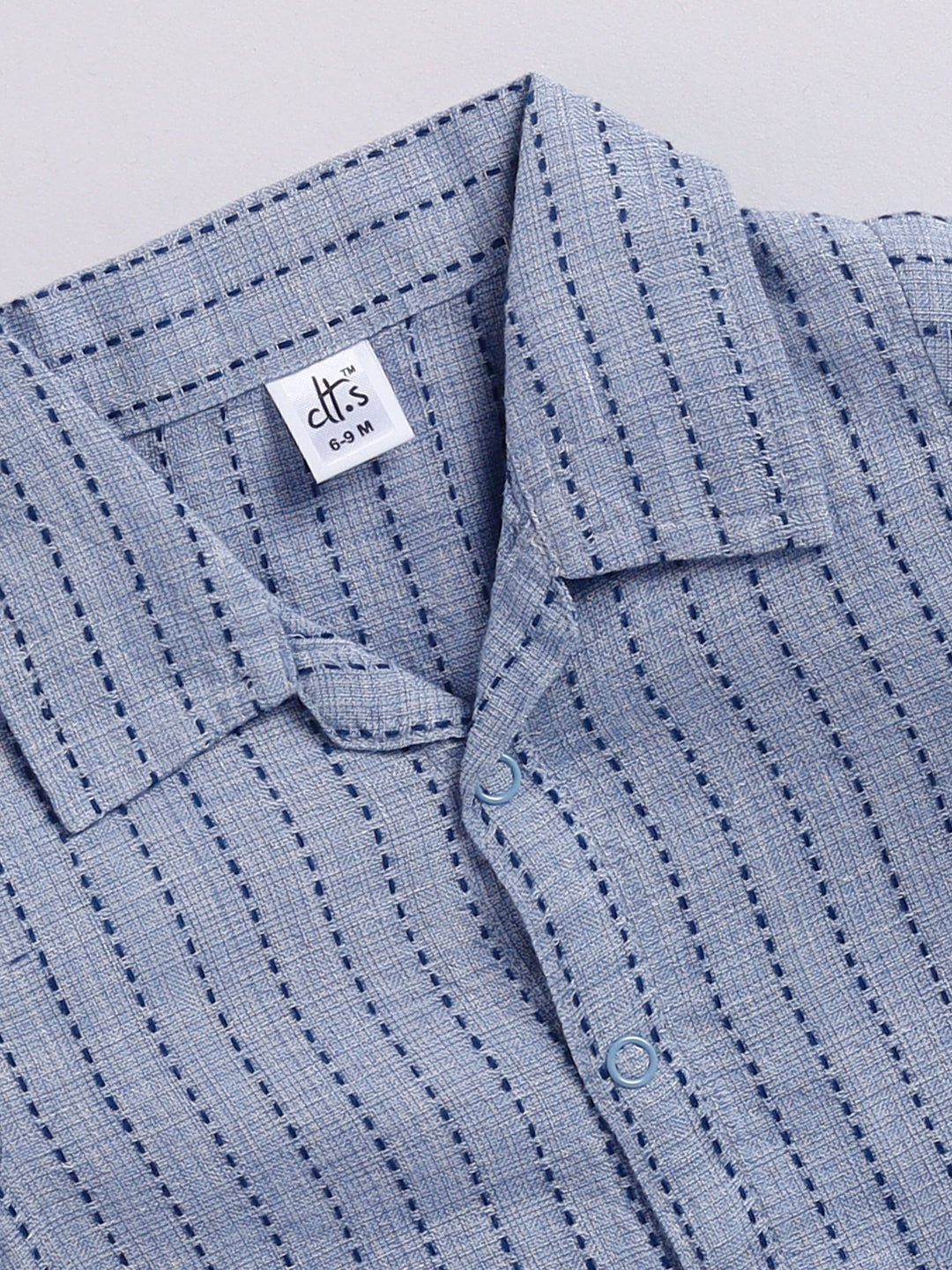 Printed Delight: Featuring fun and colorful prints, this nightwear set is sure to make bedtime exciting. Made from soft cotton, it ensures a comfortable and cozy sleep. The Blue Full sleeve Night Suit is made of 100% Cotton and has a Shirt Collar with Striped print