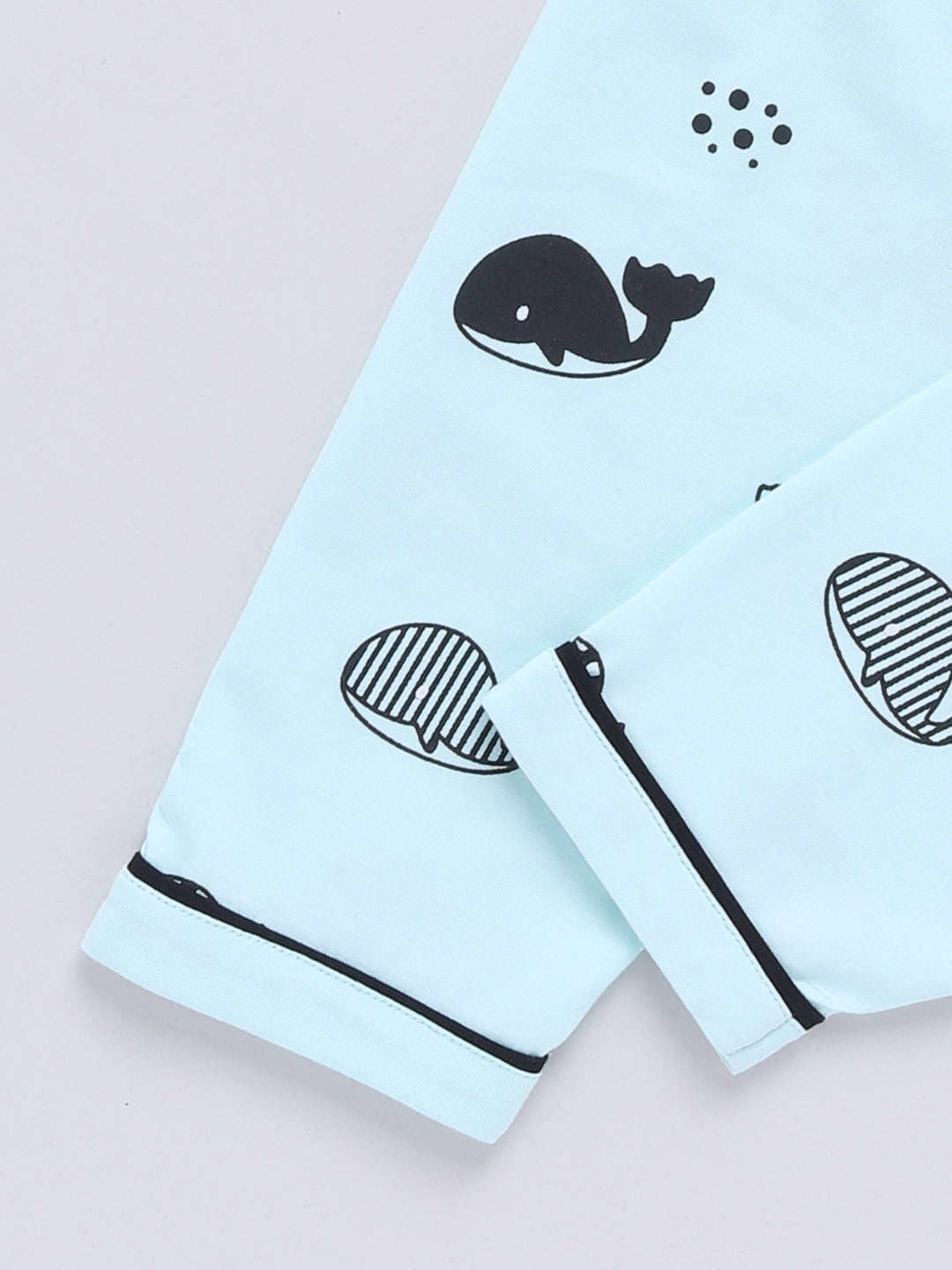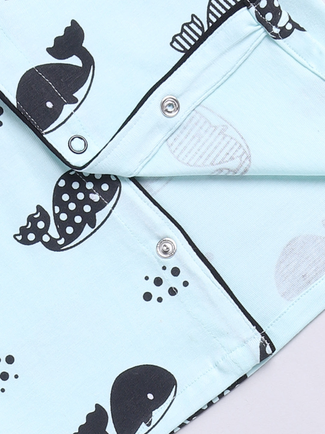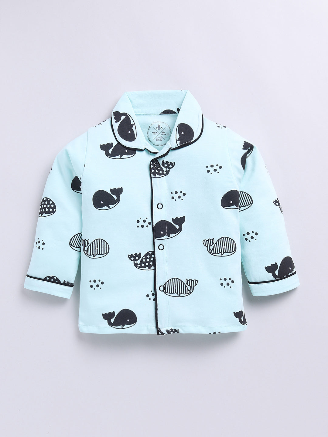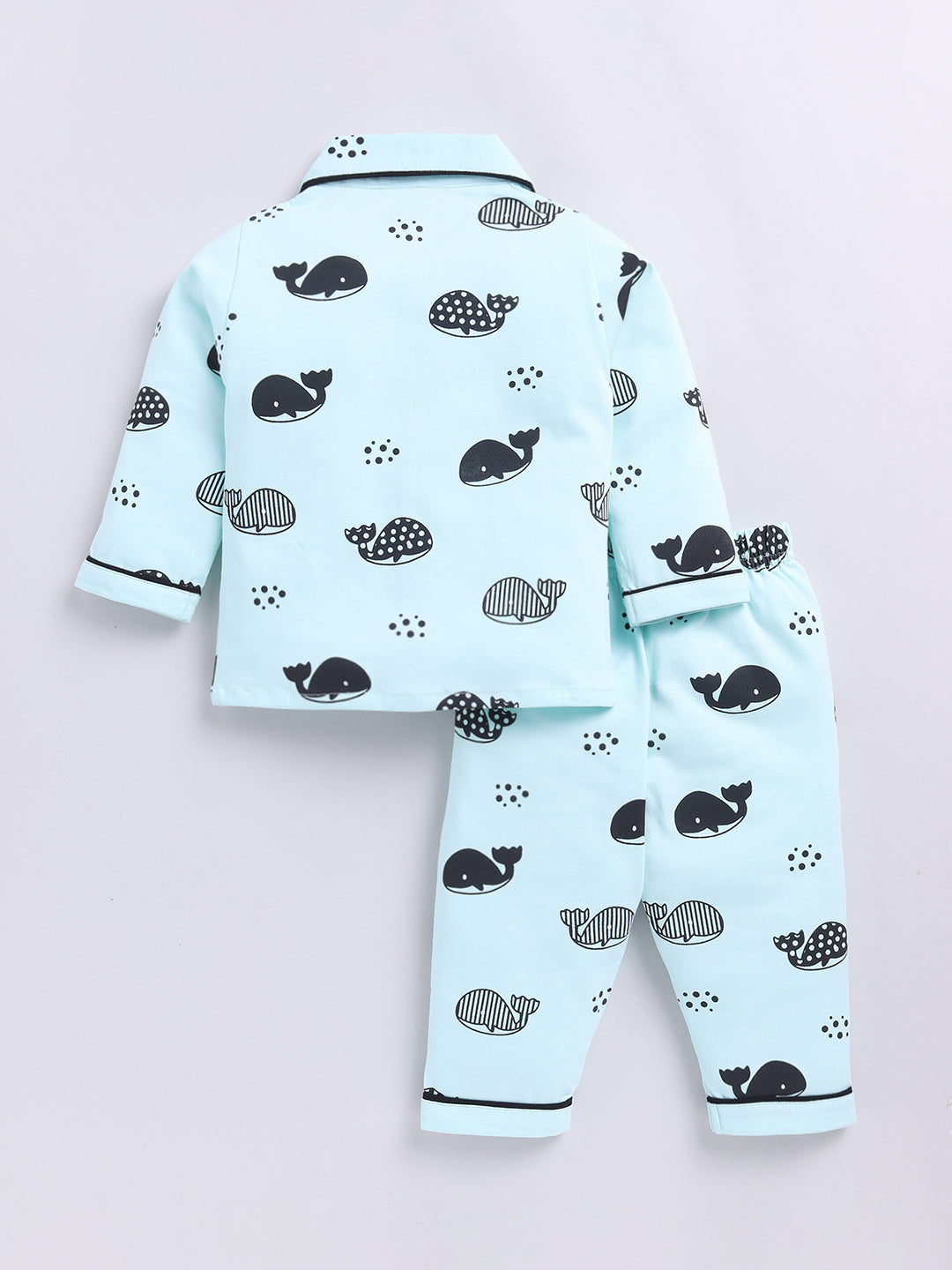 Colorful and Cozy: Colorful and cozy, this nightwear set is perfect for keeping your child comfortable during bedtime. The soft fabric ensures a peaceful sleep. The Blue Full sleeve Night Suit is made of 100% Cotton and has a Shirt Collar with Animal print