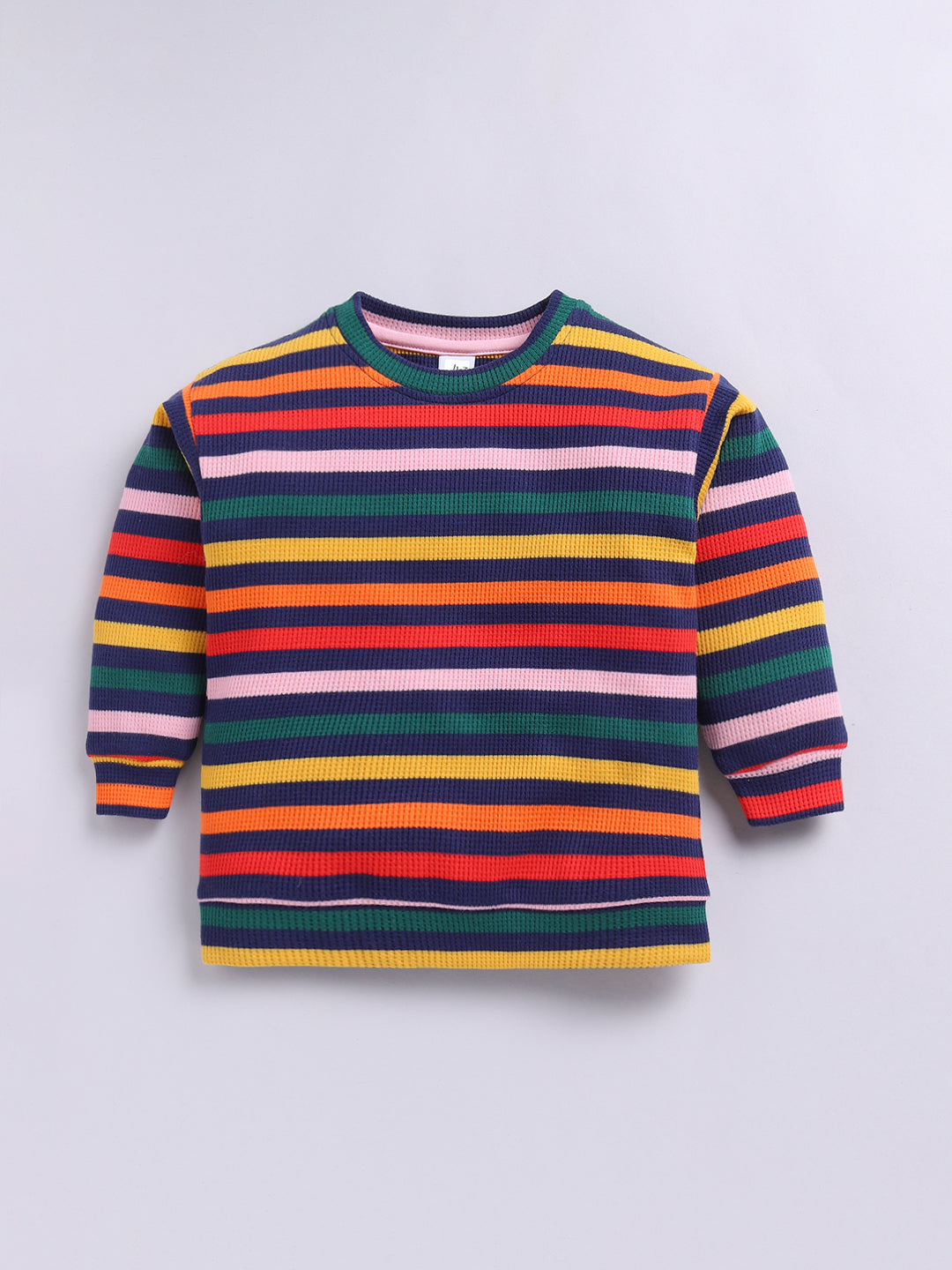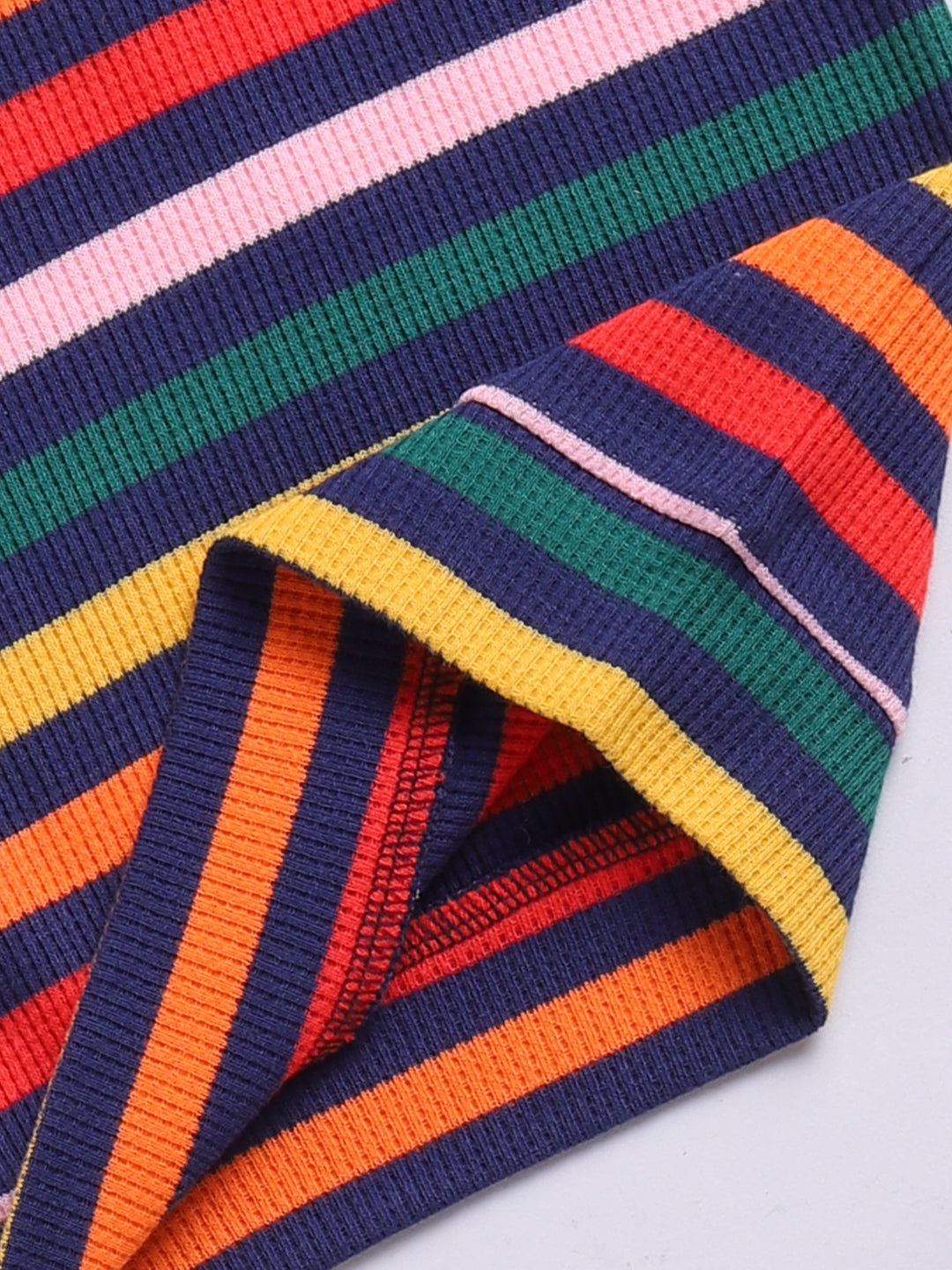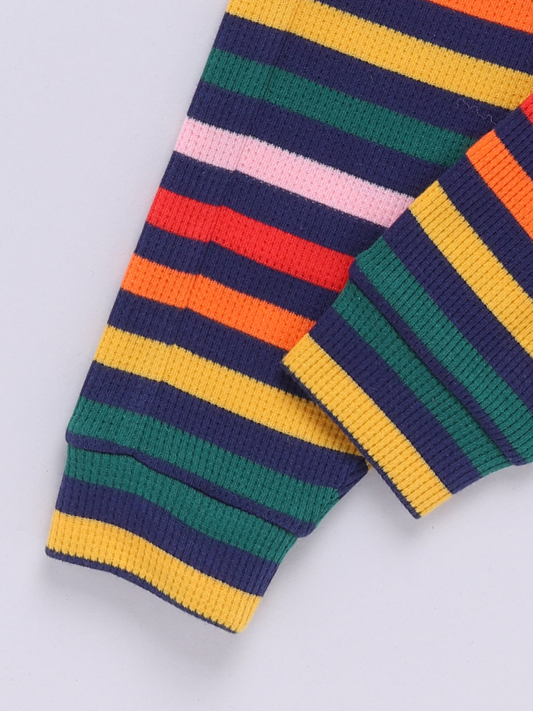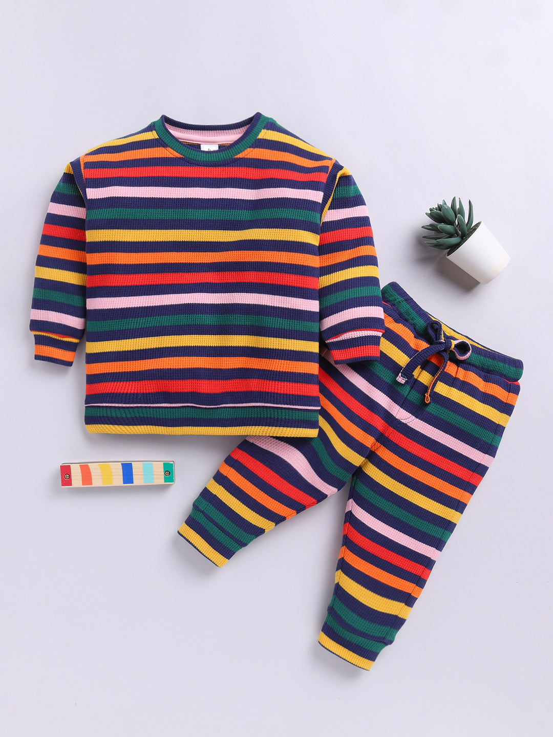 Perfect Match: This kids' co-ord set offers a perfectly matched top and bottom, crafted from soft, lightweight fabric. Its playful print and relaxed fit make it ideal for casual days or weekend outings. The Blue Co-ord Set is made of 96% Cotton 4% Spandex and has a Round Neck with Striped print