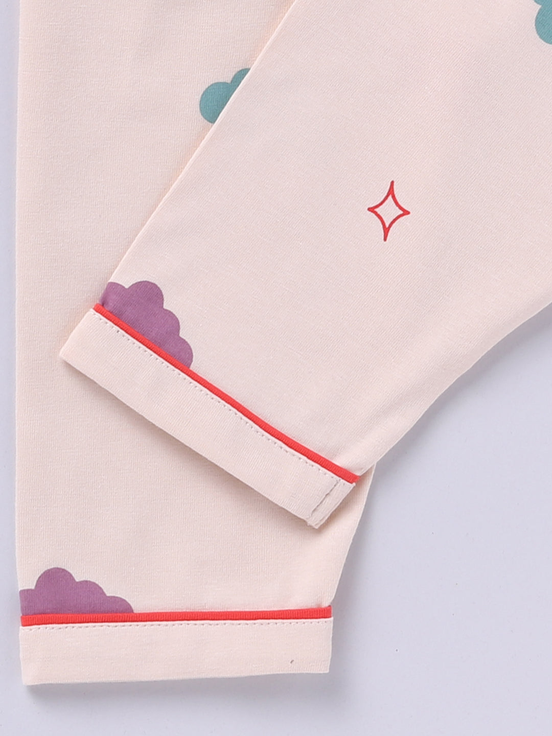 'Clouds' Beige Cotton Knitted Full Sleeve Night Suit