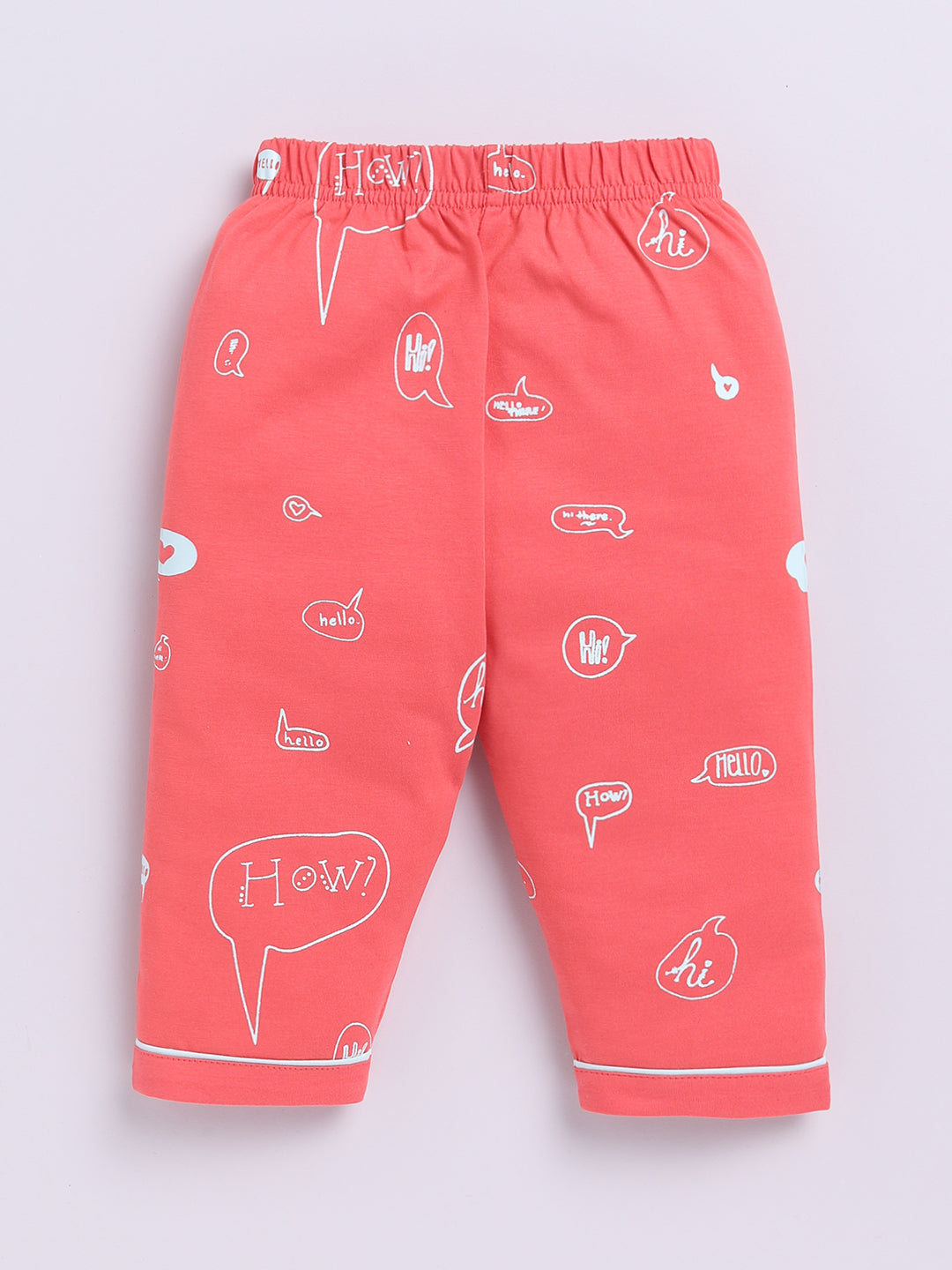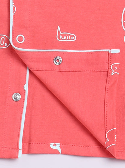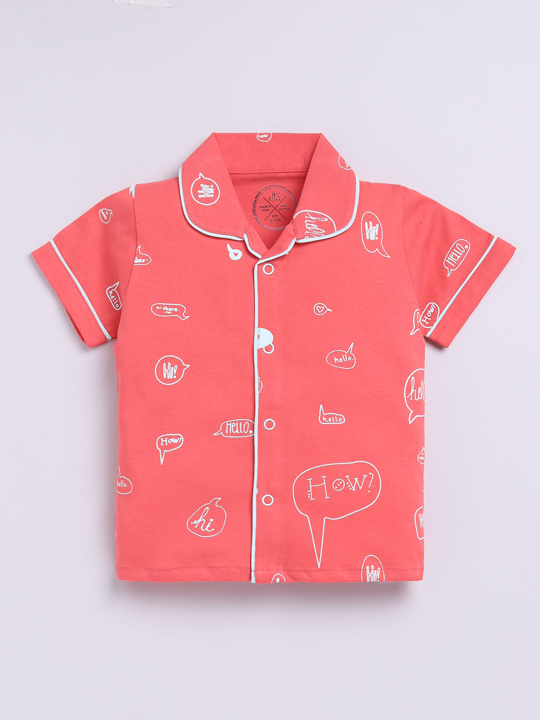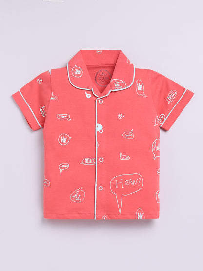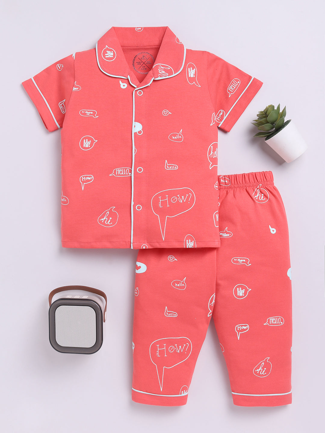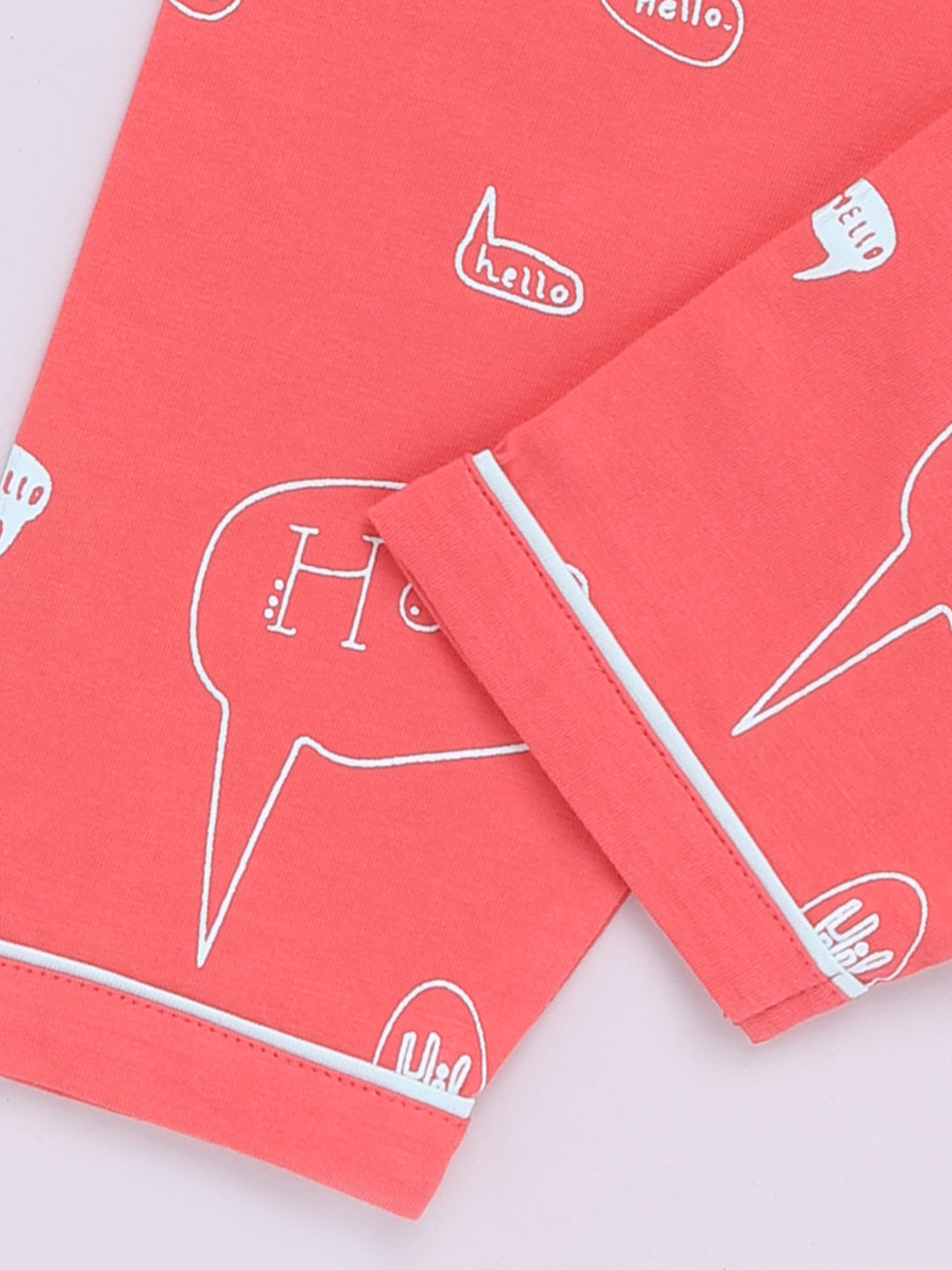 Coral Cotton Short Sleeves Typography Nightwear Set