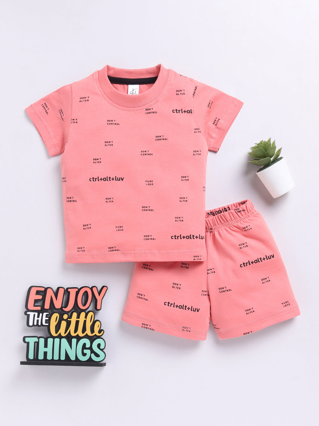Playful & Practical: Crafted for comfort, this cotton summer outfit is soft, breathable, and perfect for endless playtime. Let your child stay stylish while feeling light and free! The co-ord set has Round Neck and Short Sleeves in a Typography print