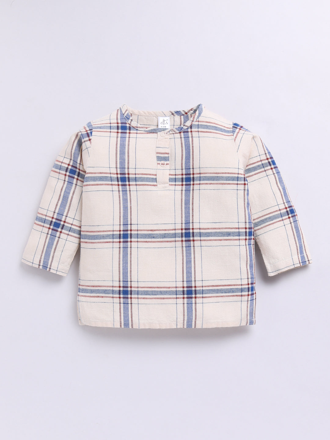 Perfectly Cool: Designed for warm weather, this breathable cotton daywear keeps your little one comfy and stylish. A great choice for sunny days and outdoor play! The Kurta Pyjama set has Round Neck and Long Sleeves in a Checked print