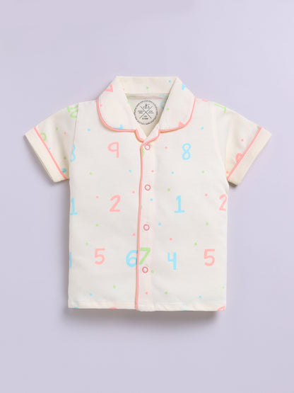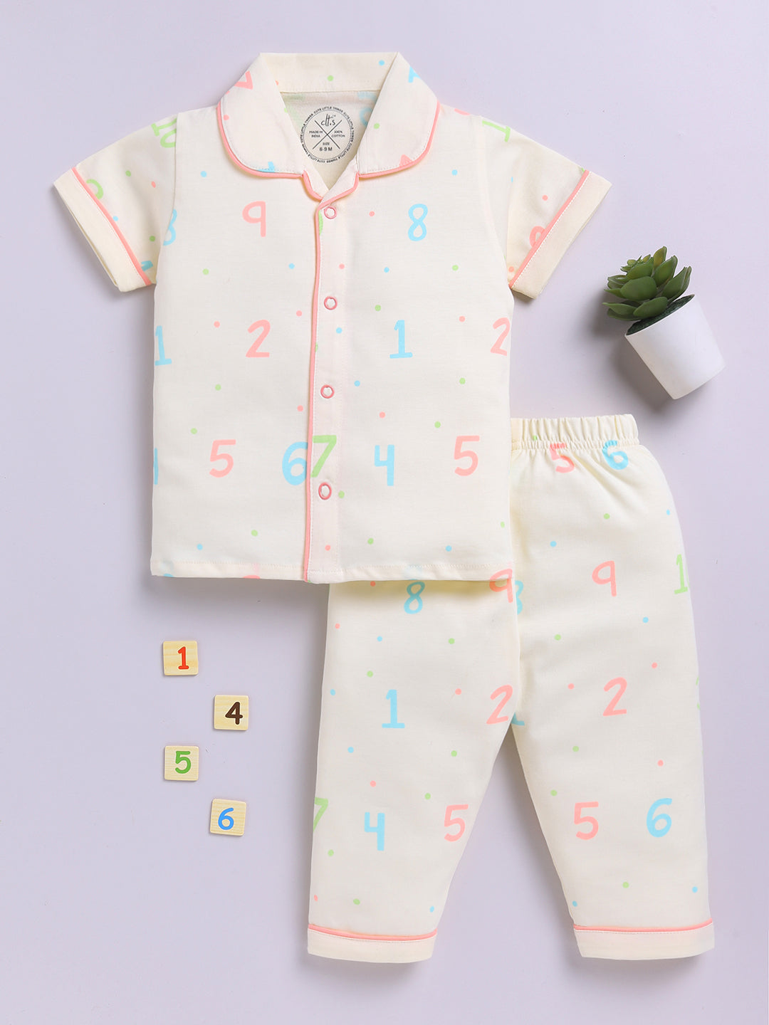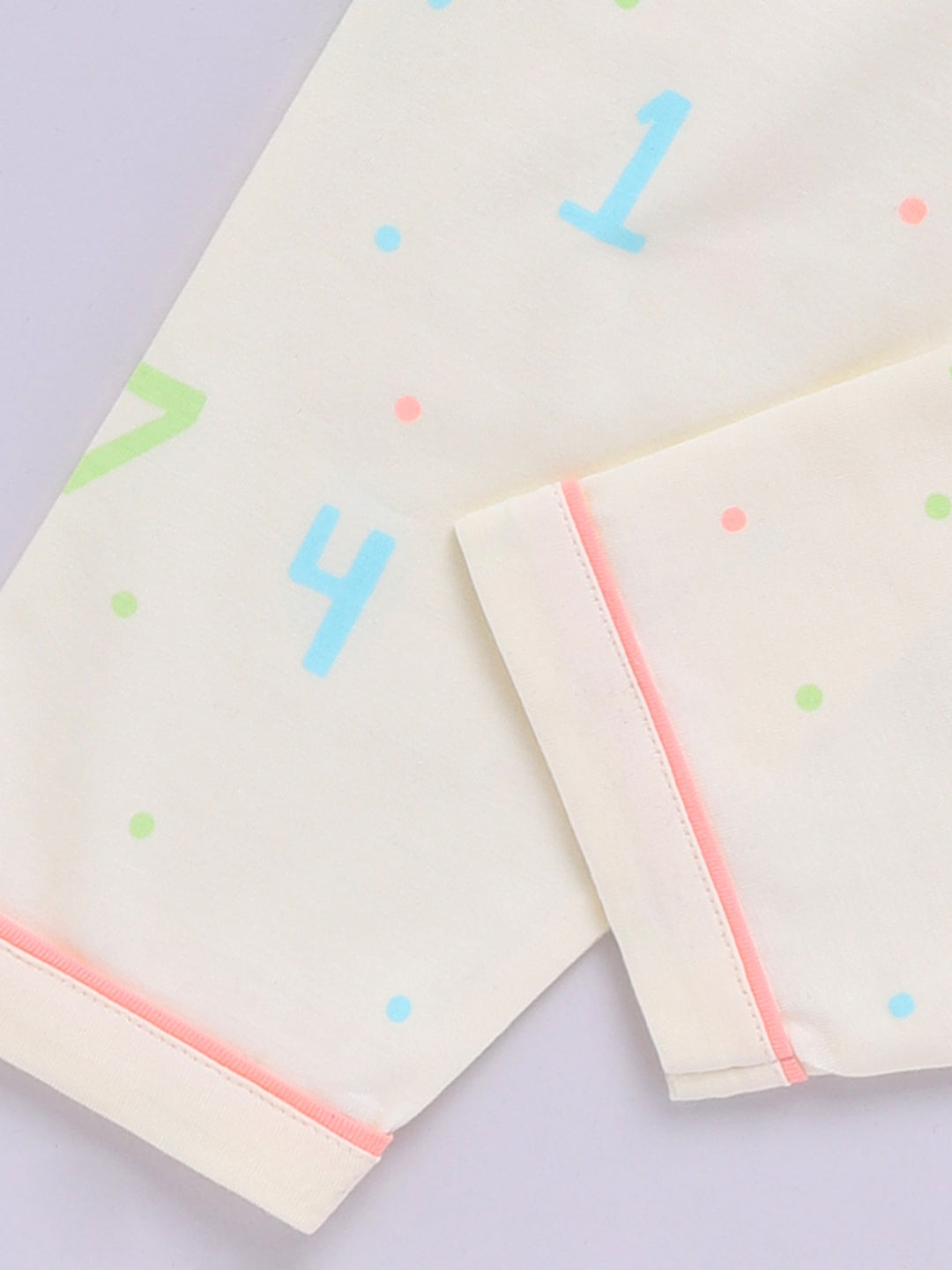 Cream Cotton Short Sleeves 'Numbers' Nightwear Set