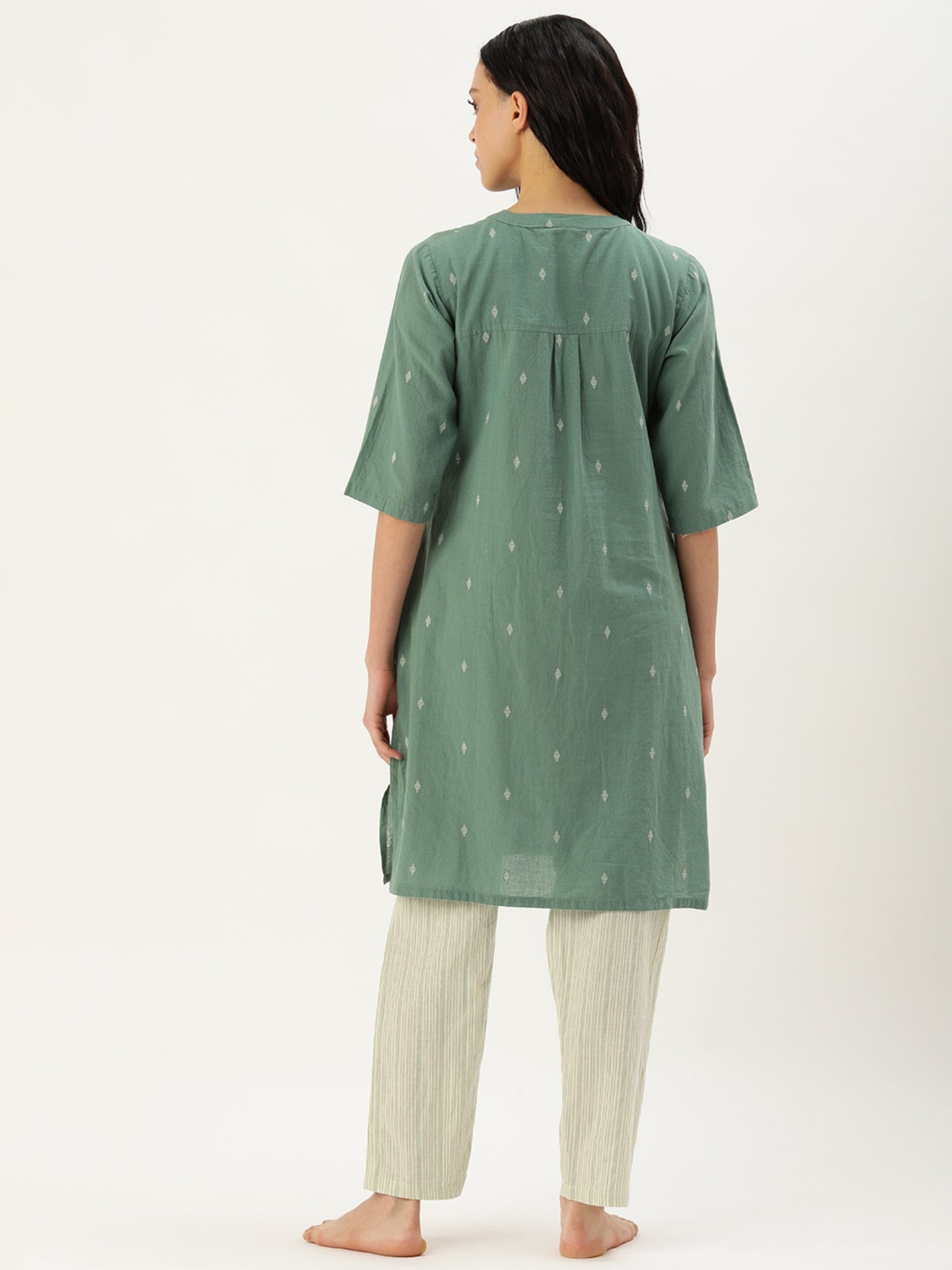 Unleash your style with our 100% cotton Kurta & Pyjamas for Women by CLT.S. This multi-purpose mix-n-match nightwear is designed to suit every occasion. Whether it's a casual night in, a family gathering, or a peaceful night's sleep, this versatile ensemble delivers comfort and elegance. Elevate your nighttime experience with the premium quality of CLT.S.