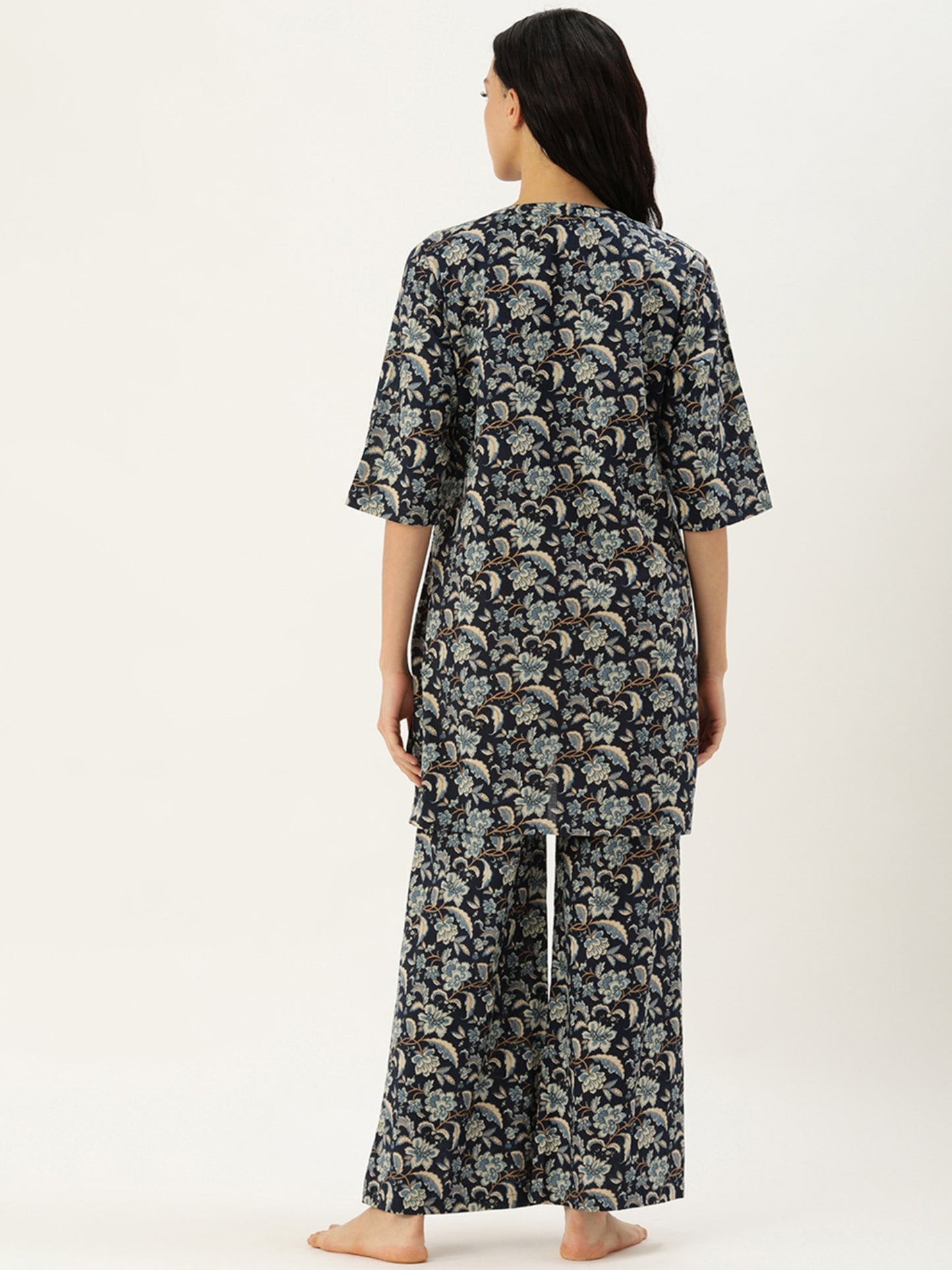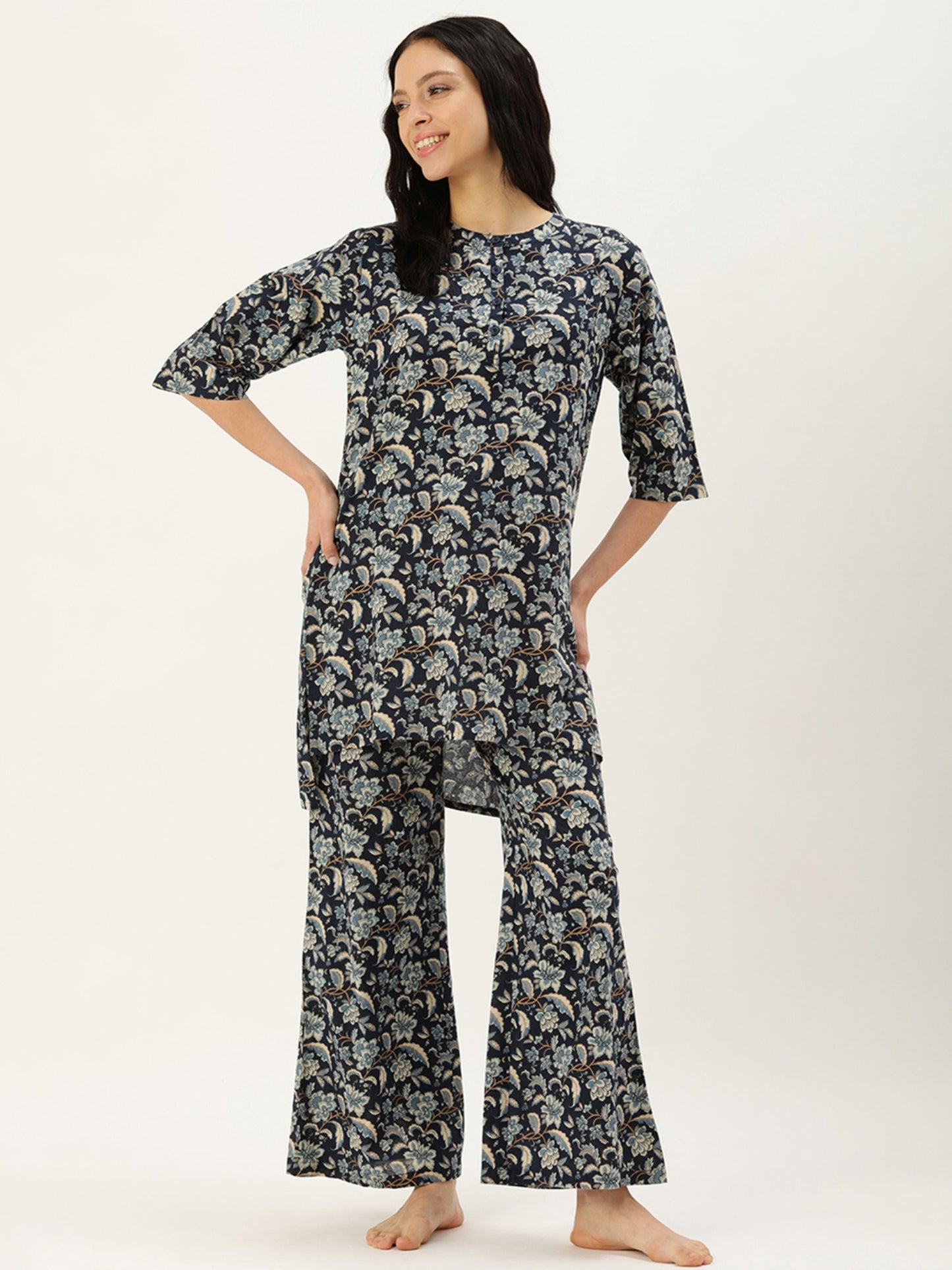 Introducing our Blue Floral Kurta & Palazzo Set for Women by CLT.S, a classic nightwear choice made from premium 100% cotton. This ensemble is designed for versatility and comfort. Whether you're unwinding after a long day or just want to feel your best, this set will be your go-to. The elegant blue floral print adds a touch of sophistication to your evening routine.