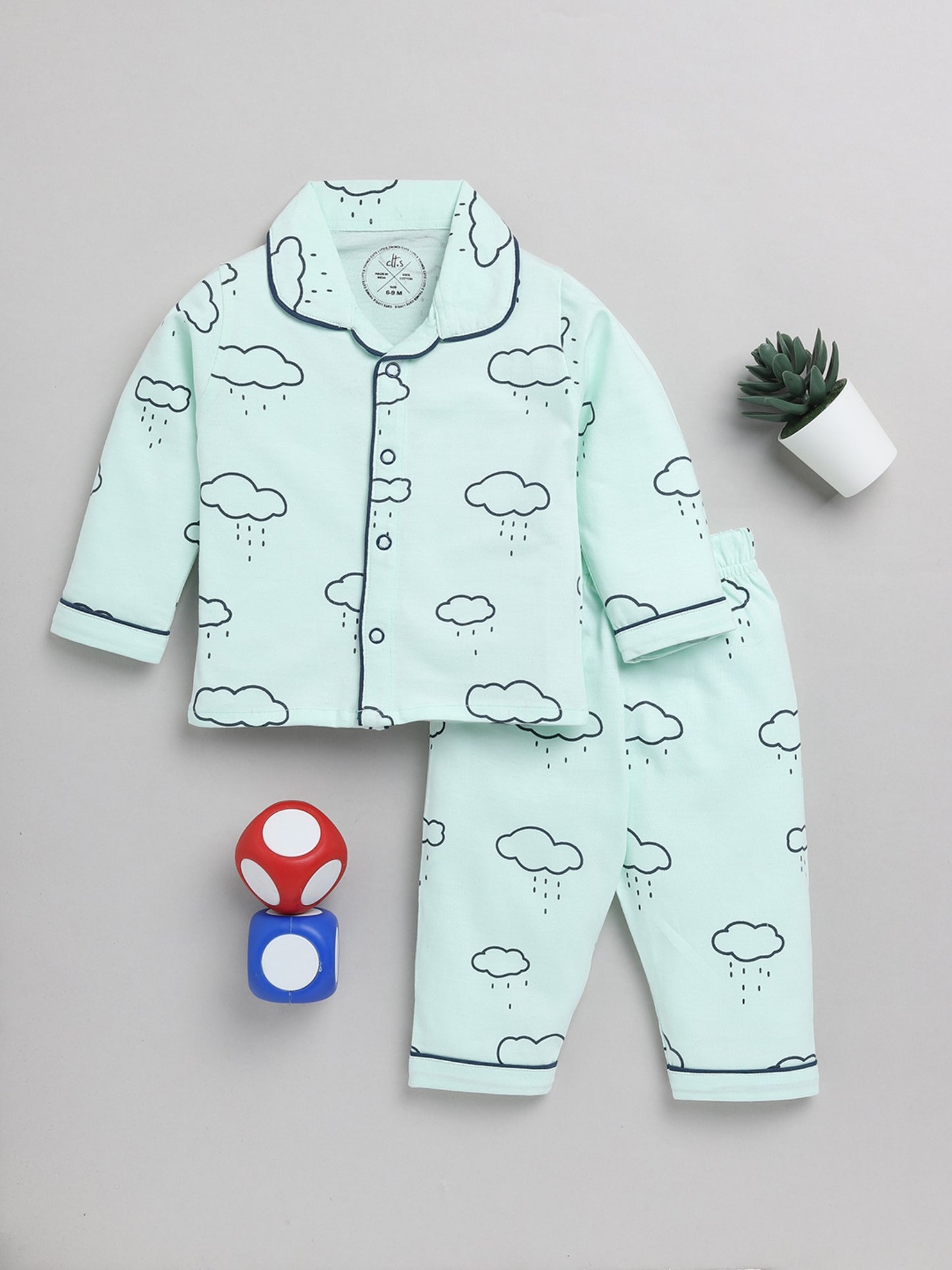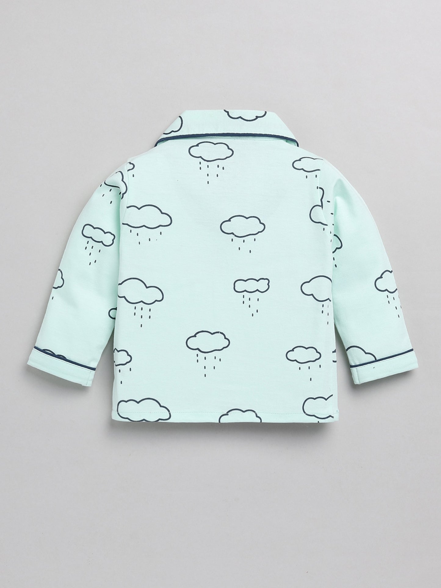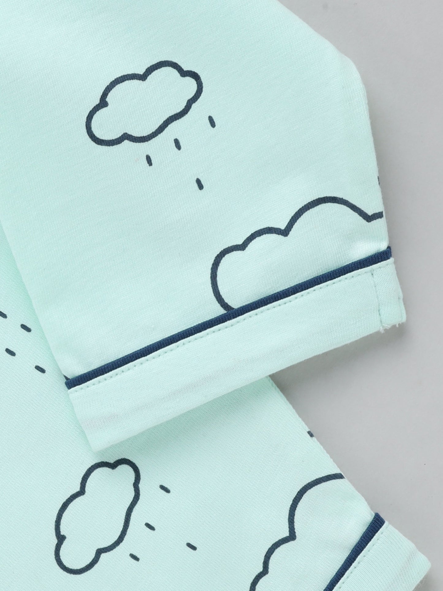 Cloud SeaGreen Cotton Full Sleeve Nightwear Set