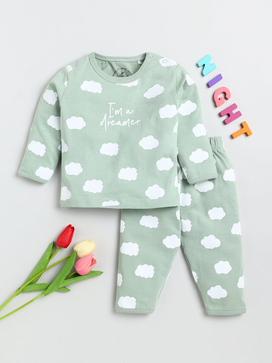 Dress up your baby in this cute & comfy night suit from Clt.s. Bedtime is made easy and fun for your little one in our easy-fit pyjama set. The soft, breathable fabric will ensure that your baby has a sound sleep all night long.