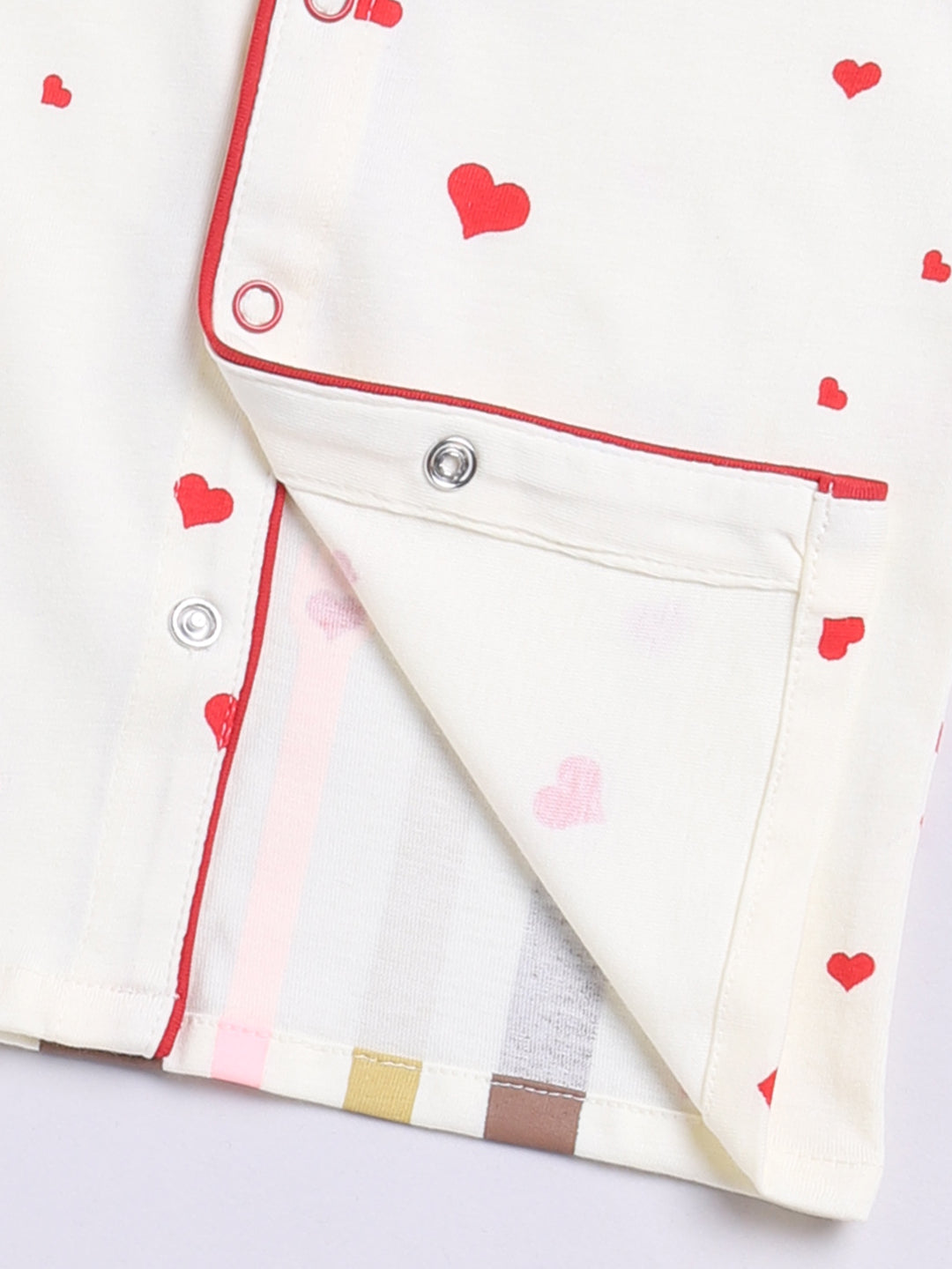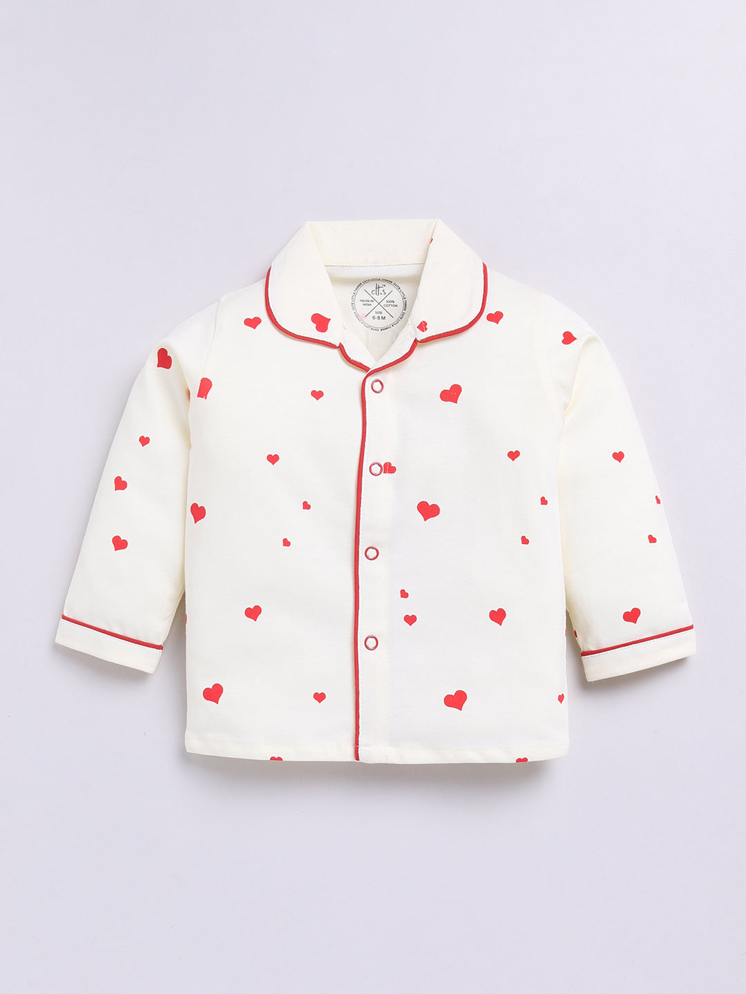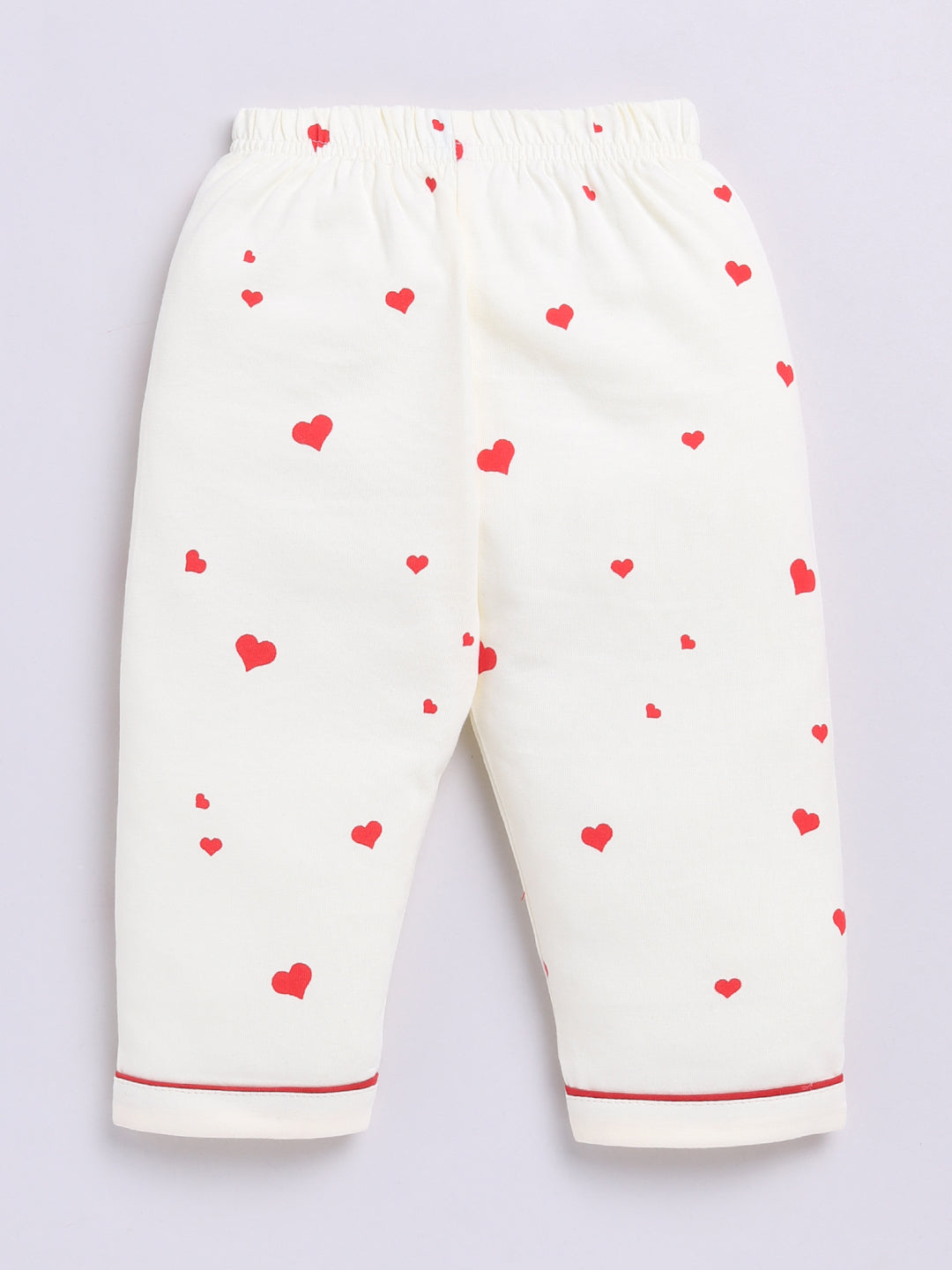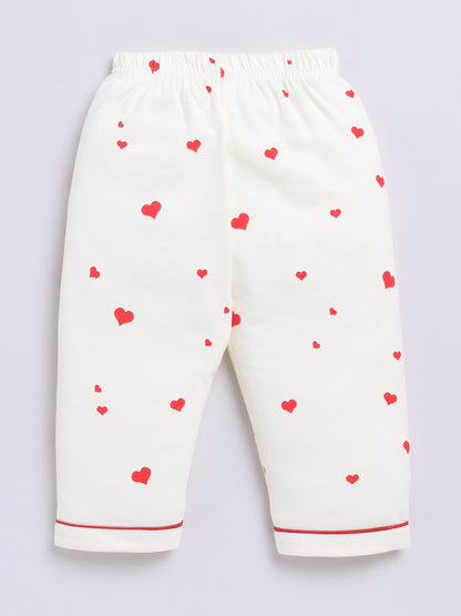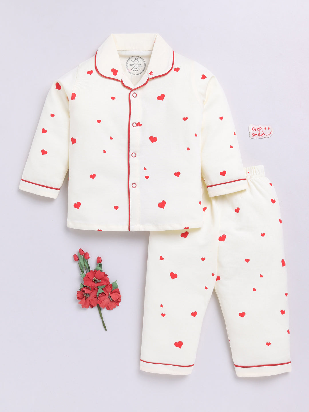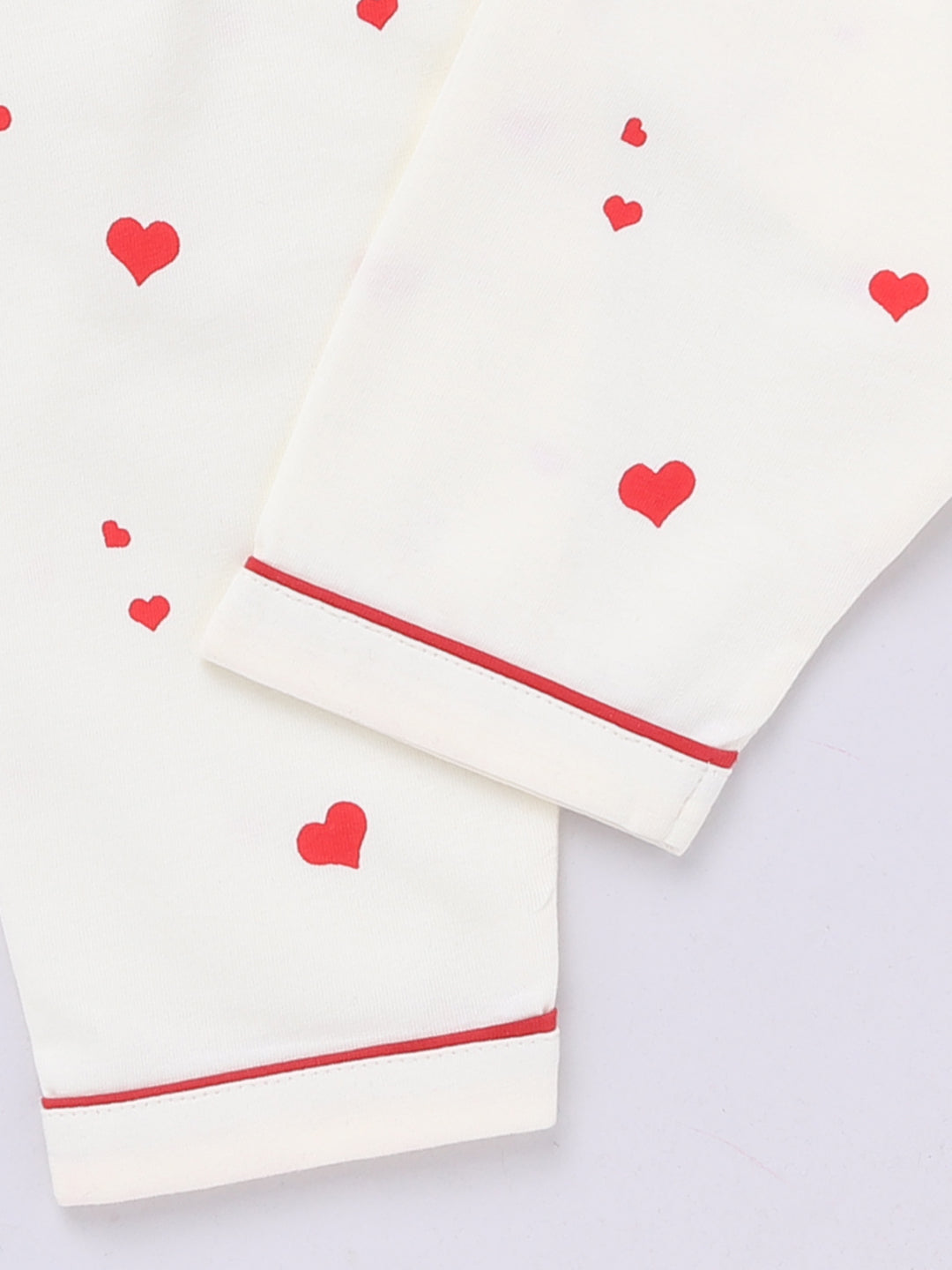 'Hearts' Cream Cotton Full Sleeves Nightwear Set