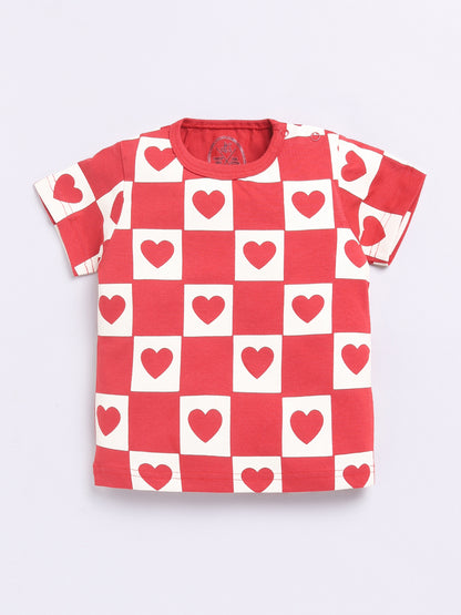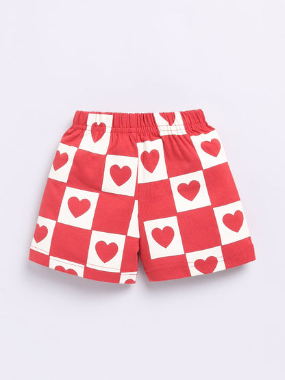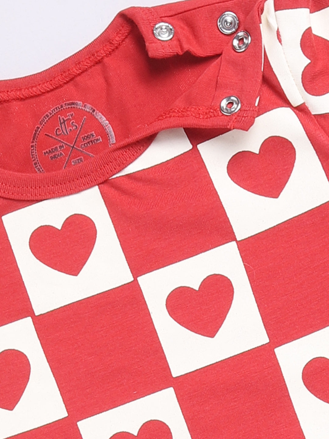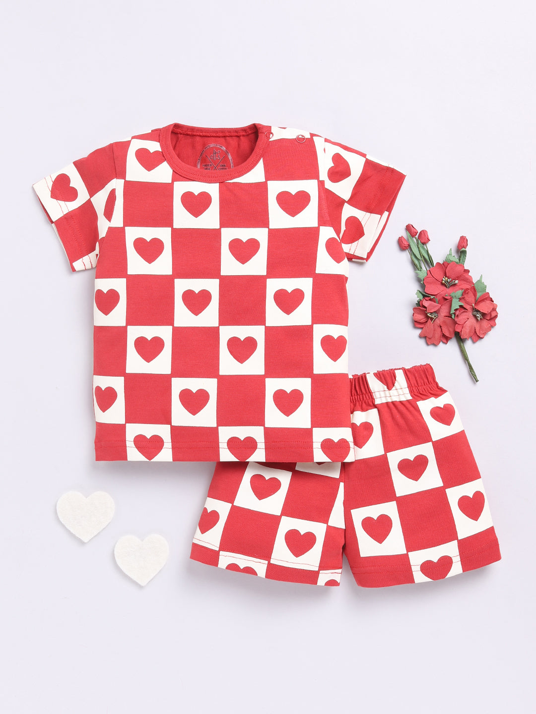 'Hearts' Red Cotton Half Sleeves Nightwear Set