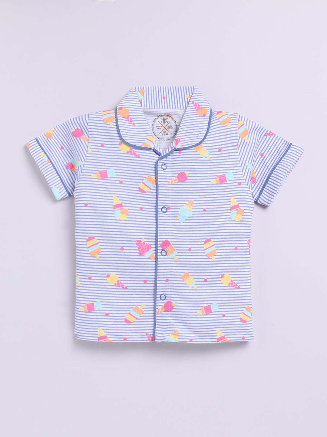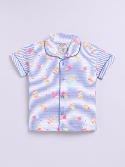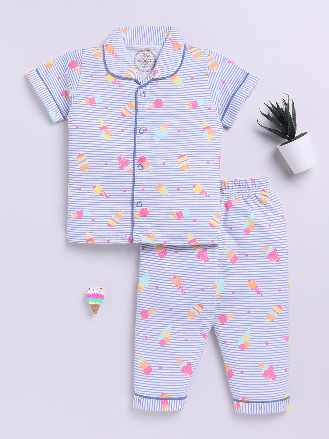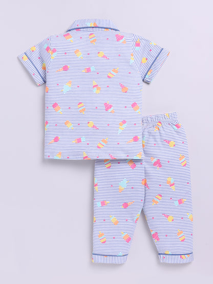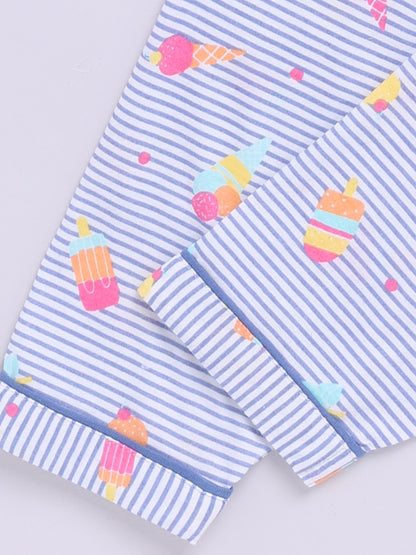 Ice Cream Blue Cotton Half Sleeves Nightwear Set
