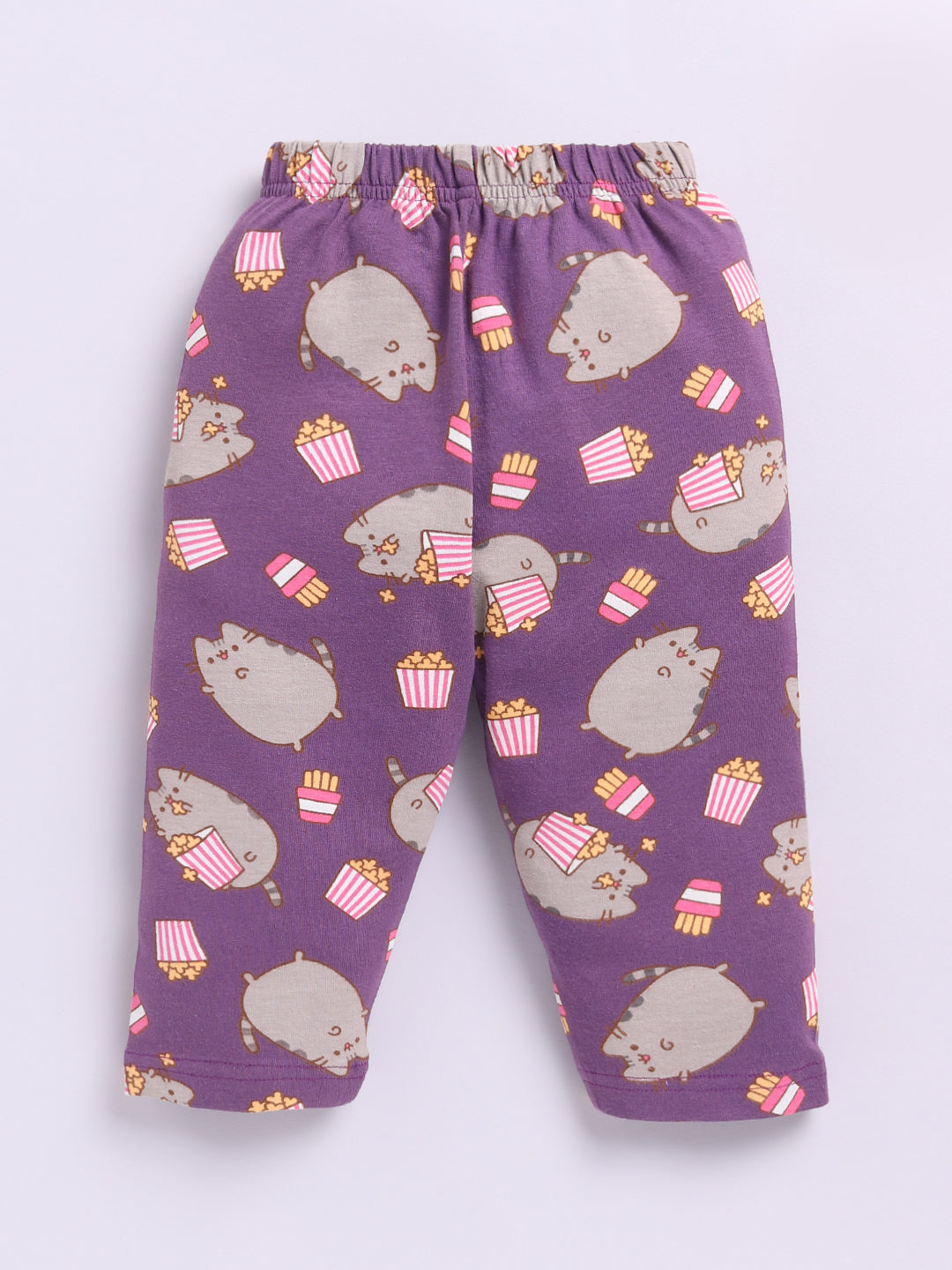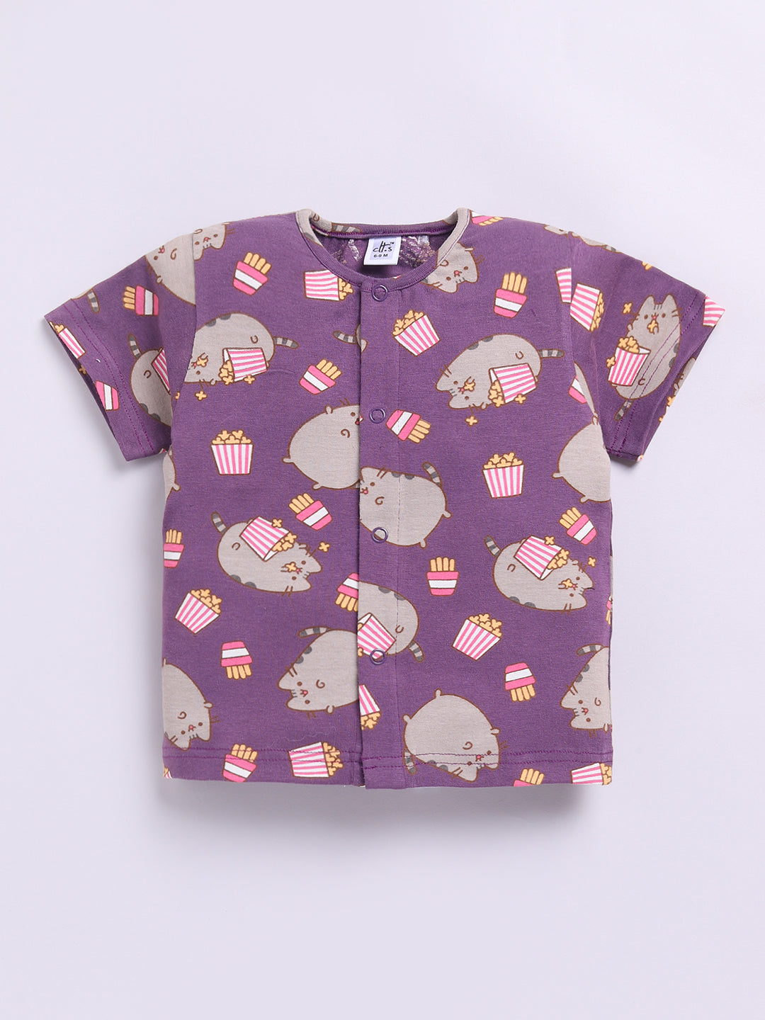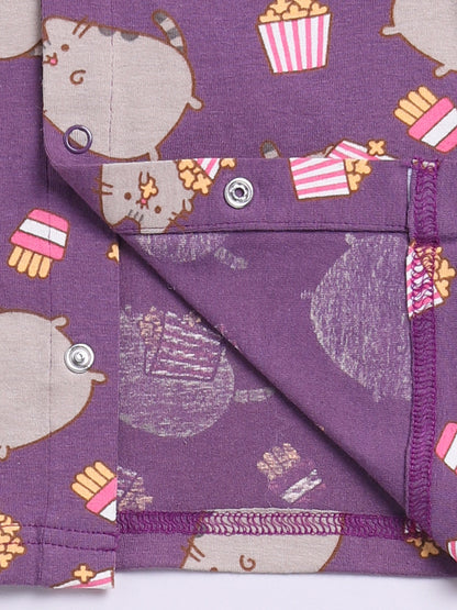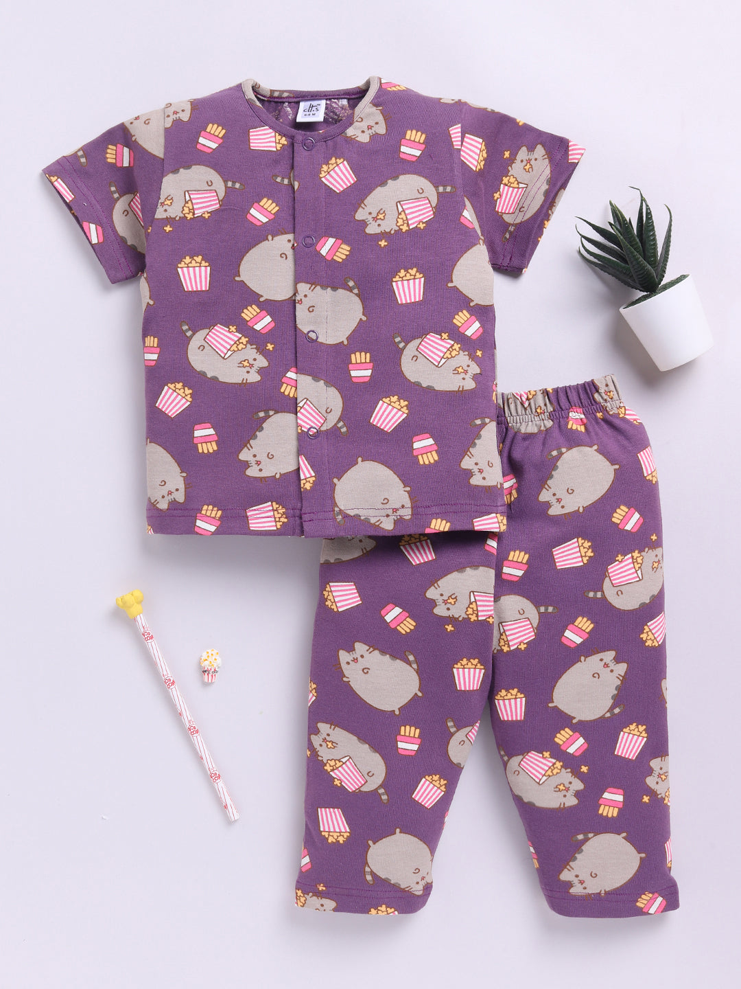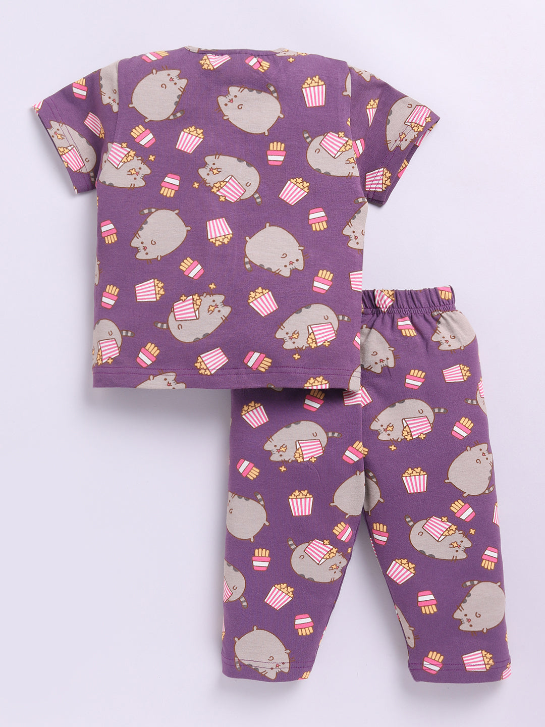 'Kitty' Purple Cotton Half Sleeves Nightwear Set