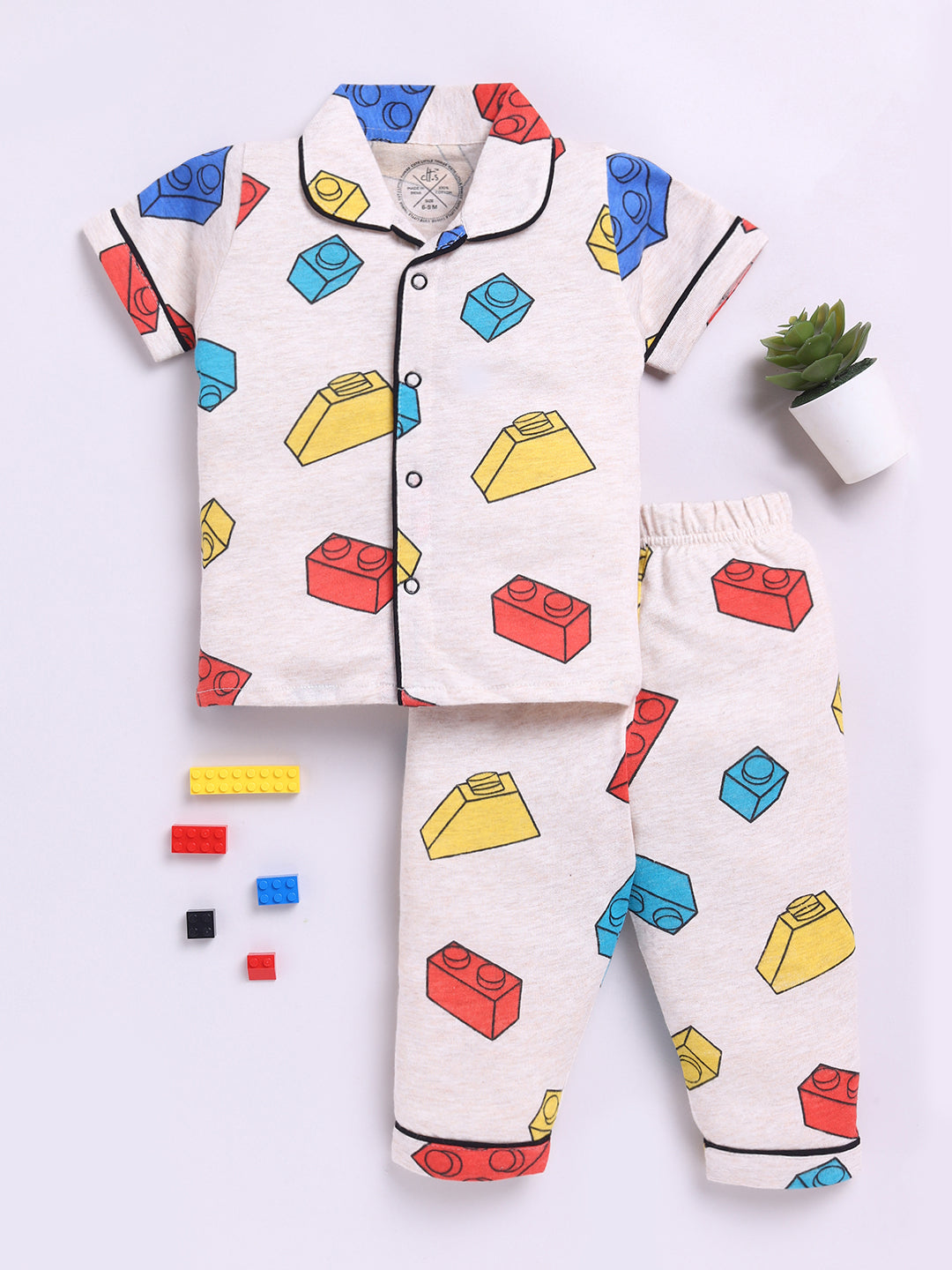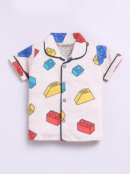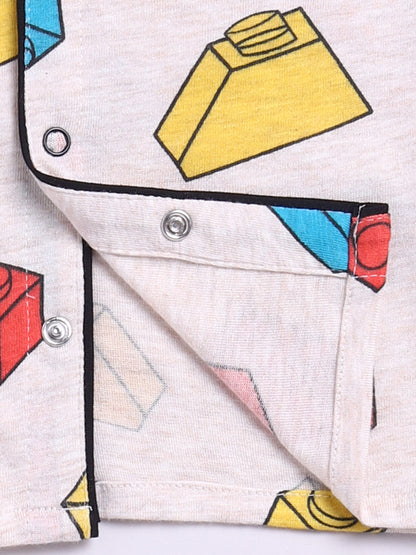 Legos Cream Cotton Half Sleeves Nightwear Set