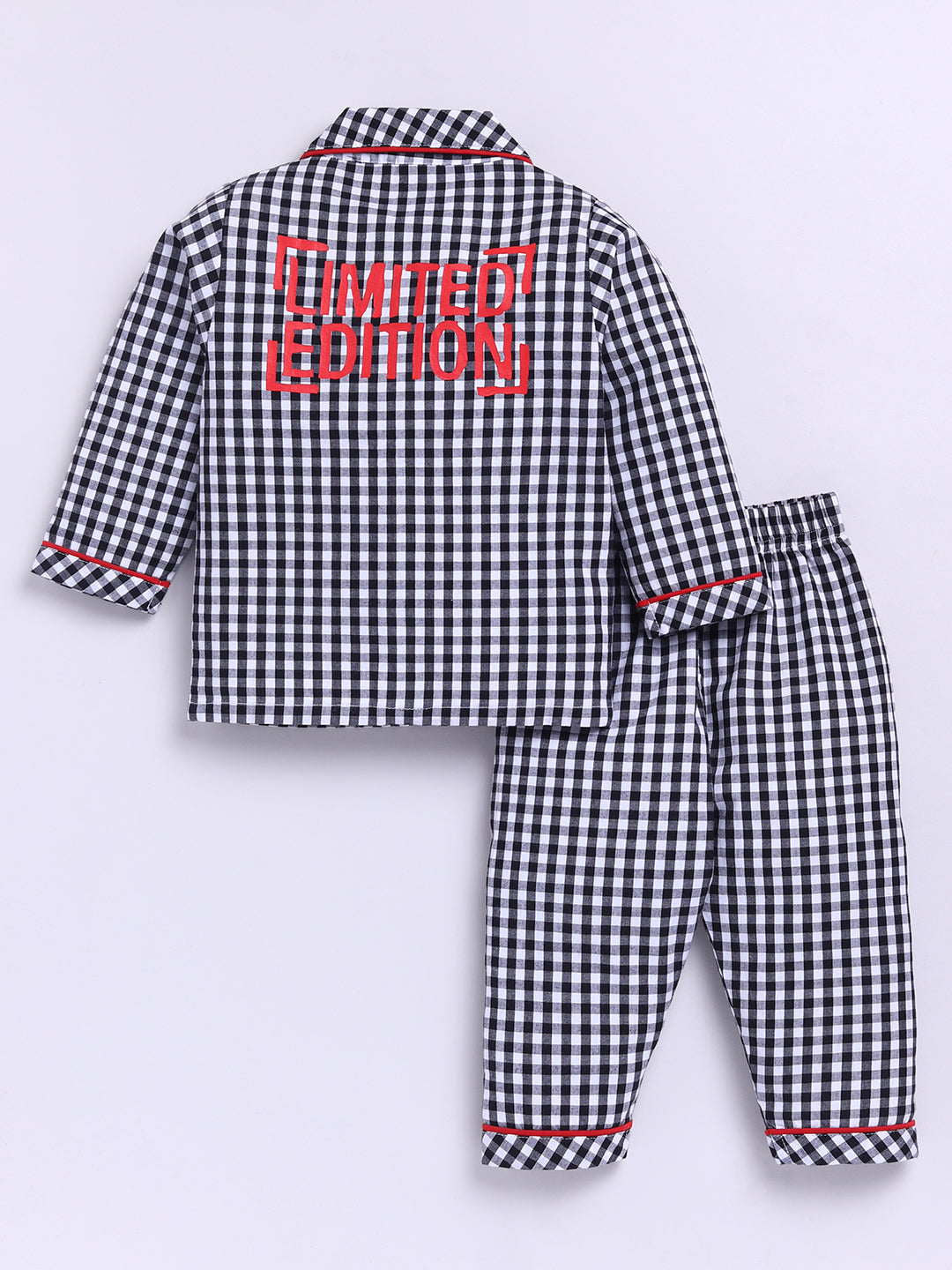 "Limited Edition" Black Cotton Woven Checked Full Sleeve Night Suit
