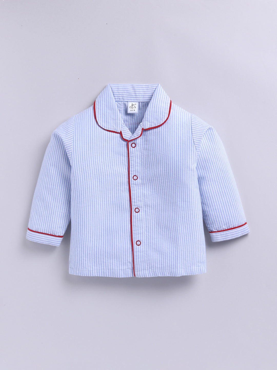 A cotton nightwear set in charming colors with bold, attractive Typography prints. Soft, airy fabric provides comfort through the nights. Its fun design makes it suitable for daily use and Fall bedtime routines. Full Night Suit for kids in Pure Cotton with Shirt Collar, Long Sleeves, and Pyjamas.