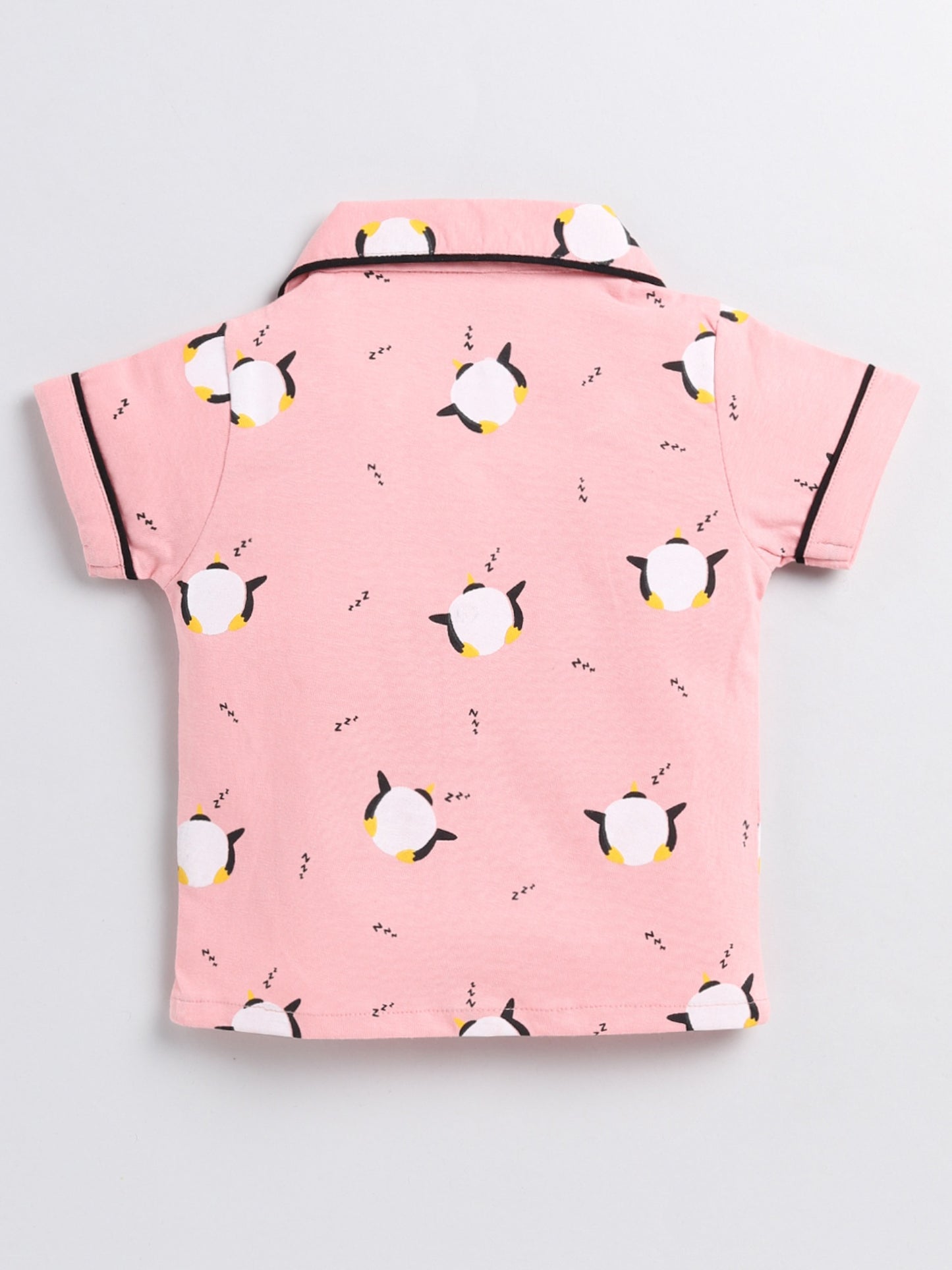 Penguin Print Pink Cotton Half Sleeve Nightwear Set