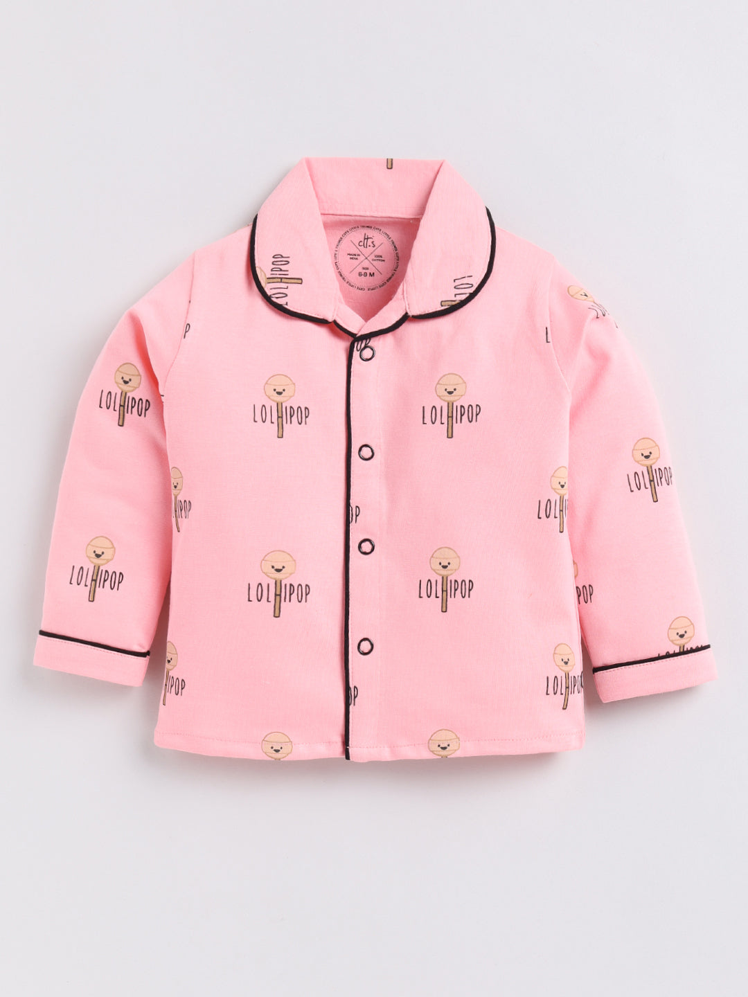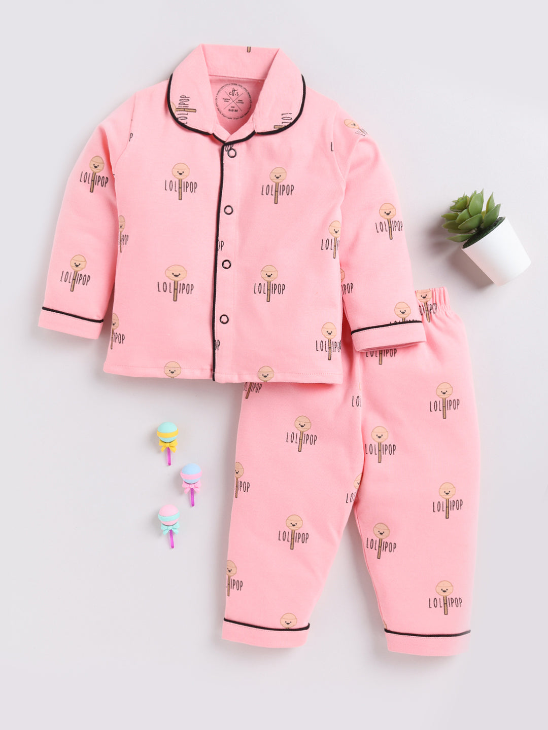Our kids' sleepwear from CLT.S offers cozy nights and restful sleep with soft, breathable fabrics and adorable designs. This full sleeve night suit is made of 100% Cotton and has a shirt collar and Graphic Print. Wash care- Machine wash