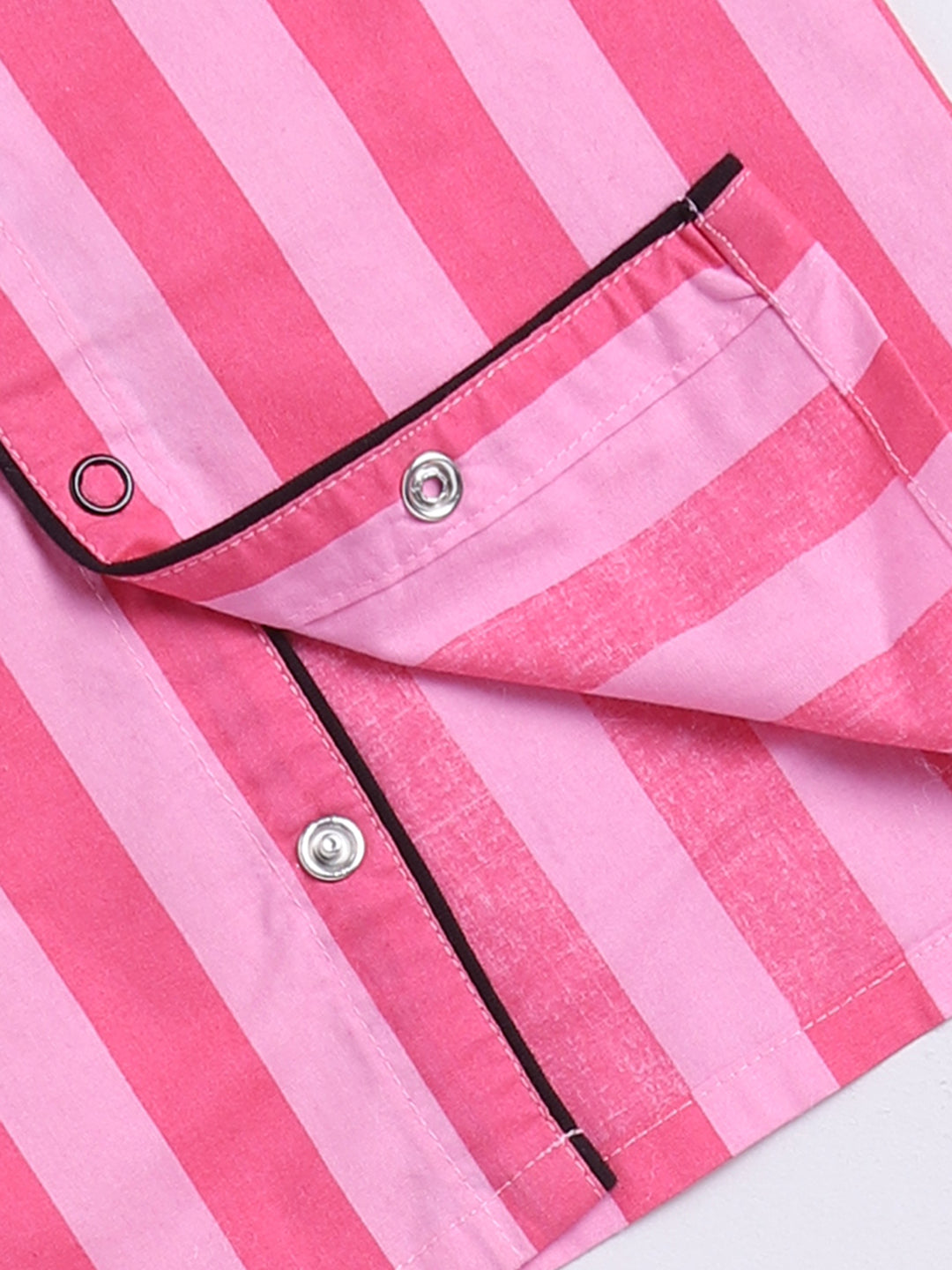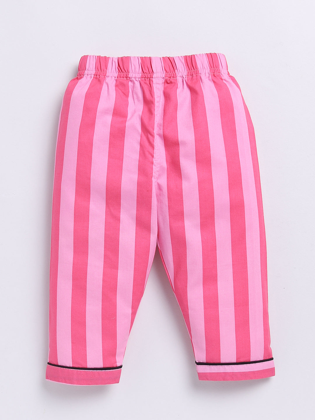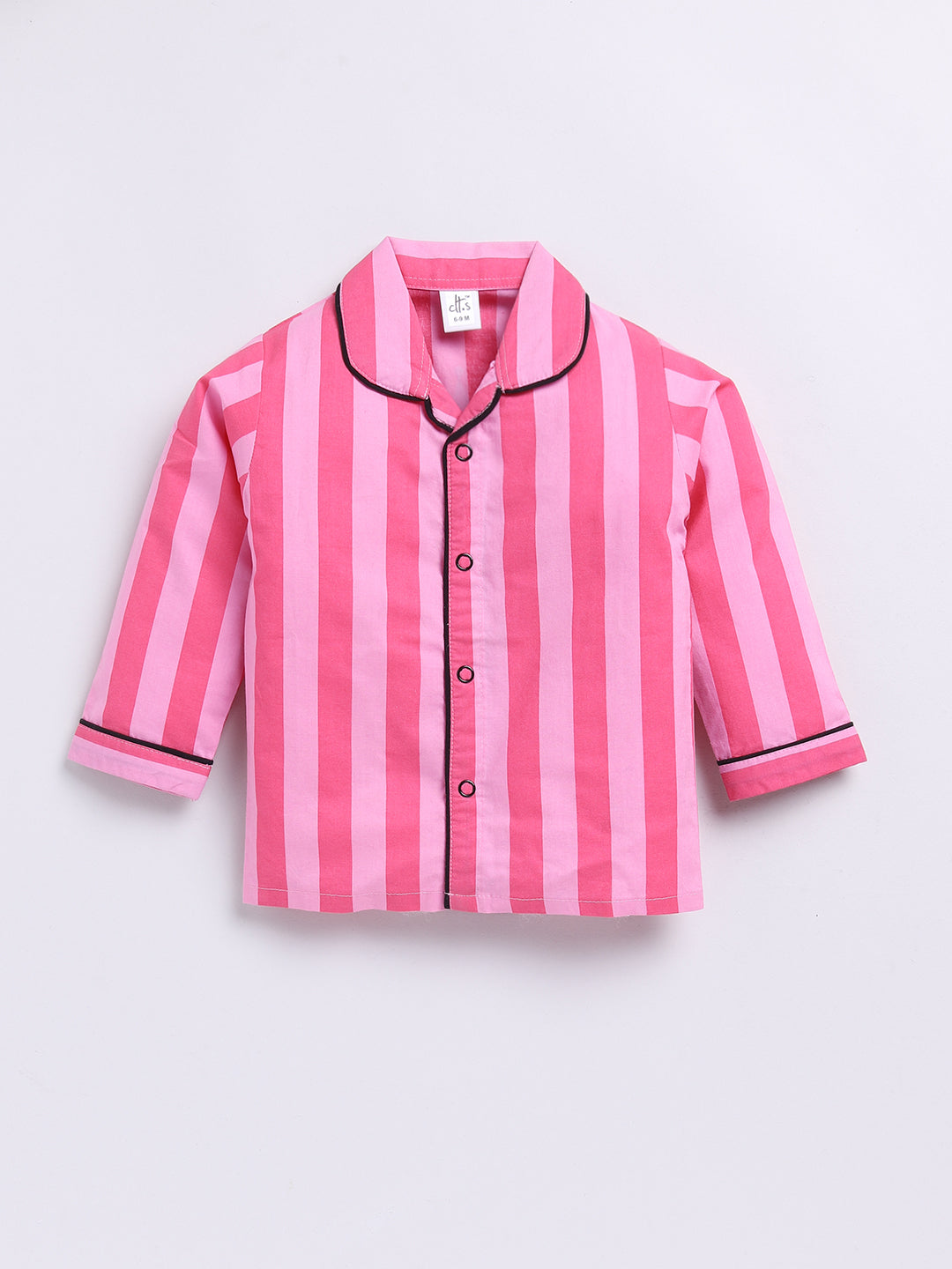 Fun Nightwear: Bring fun to bedtime with this playful nightwear set. The soft, lightweight fabric ensures your child stays comfortable throughout the night. The Pink Full sleeve Night Suit is made of 100% Cotton and has a Shirt Collar with Striped print