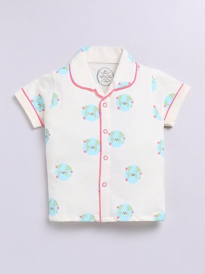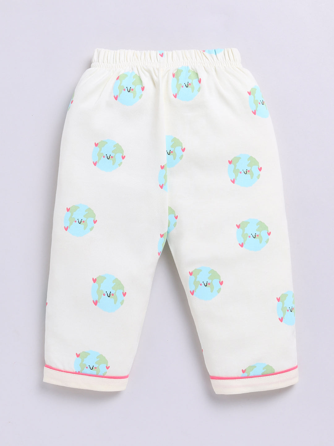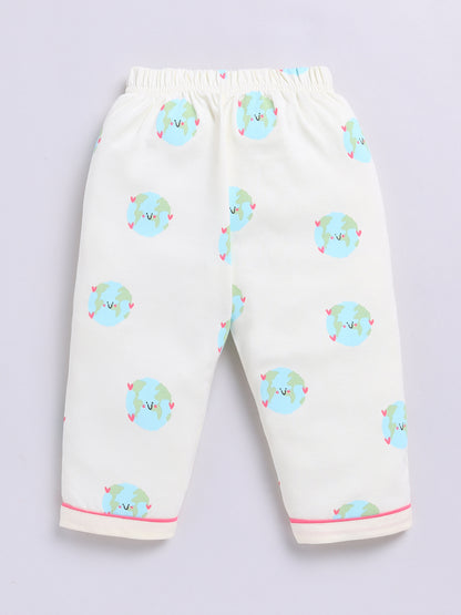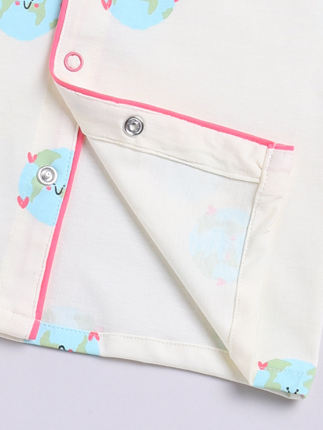 Planets Cream Cotton Half Sleeves Nightwear Set