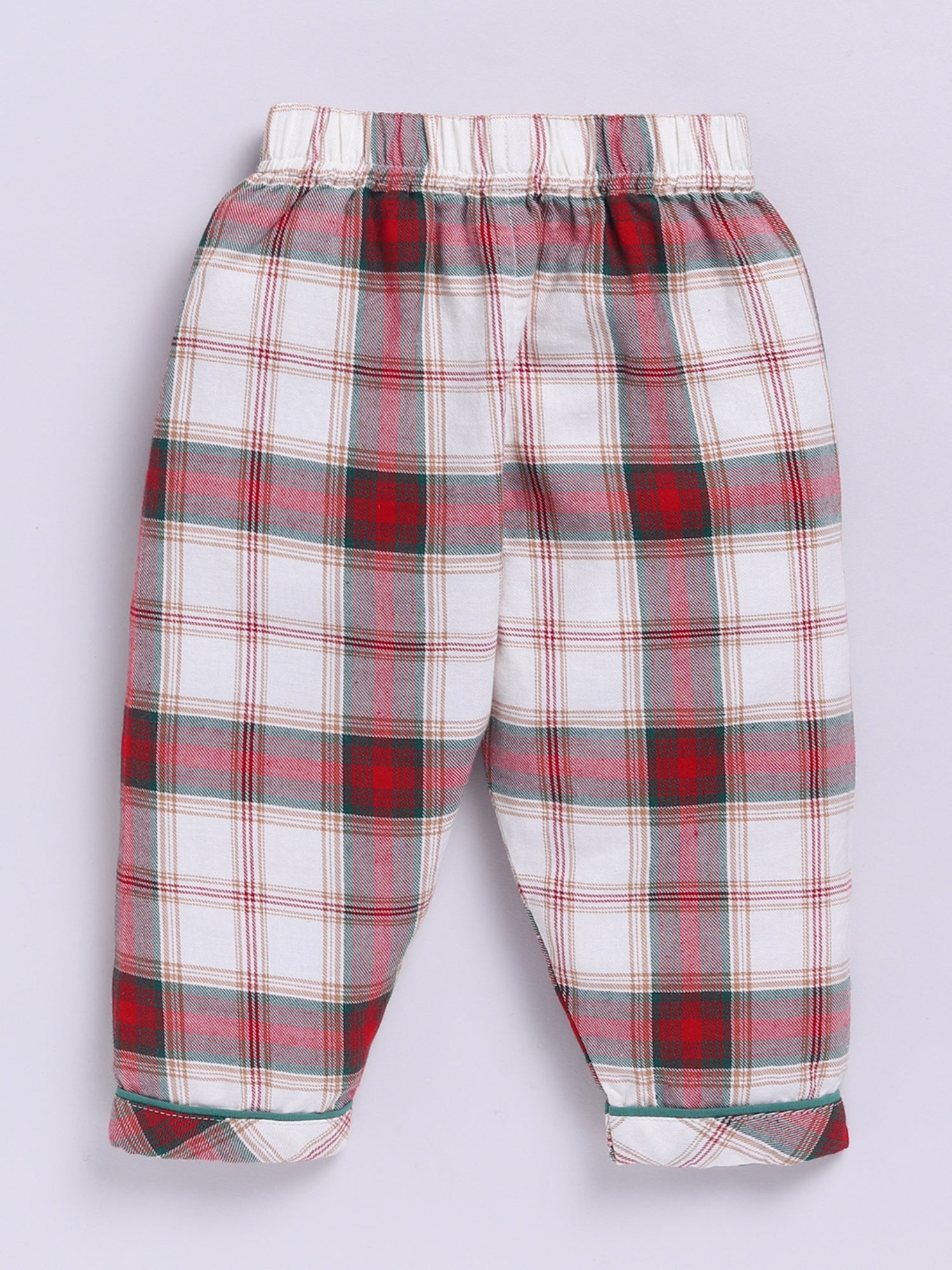Red Cotton Woven Checked Full Sleeve Night Suit